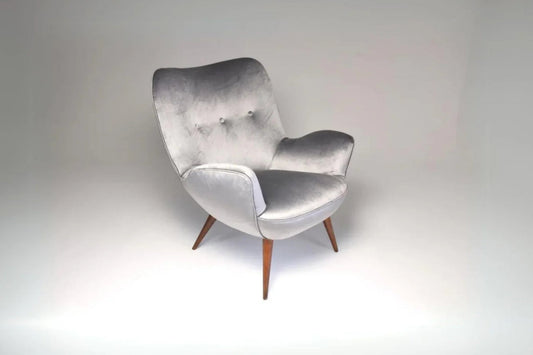 Fauteuil Franco Buzzi en velours gris du milieu des années 1940