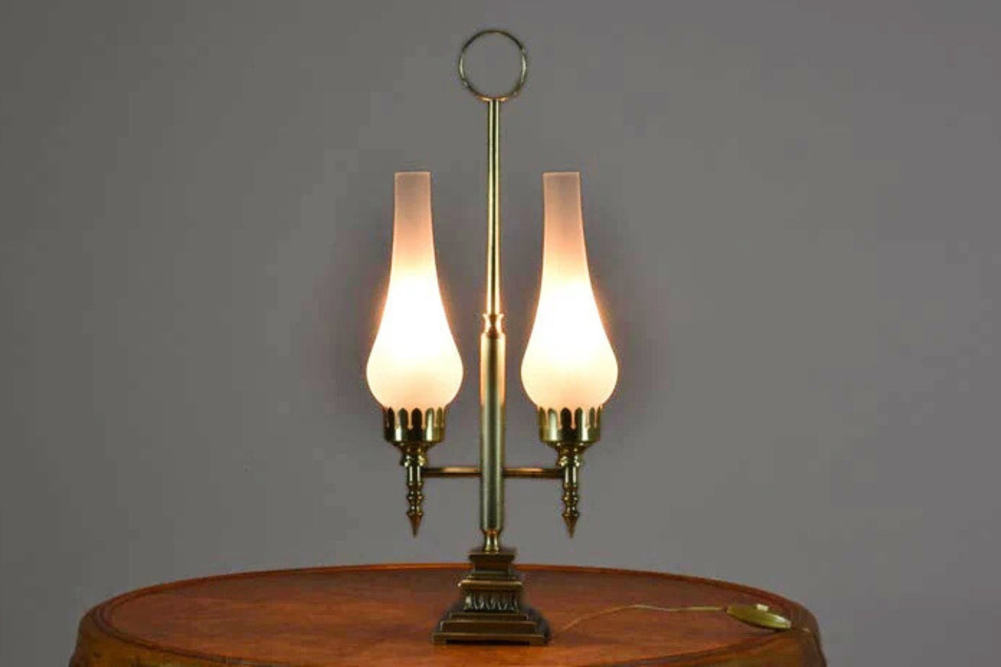 Lampe de table Art déco italienne en laiton double avec poignée, années 1940