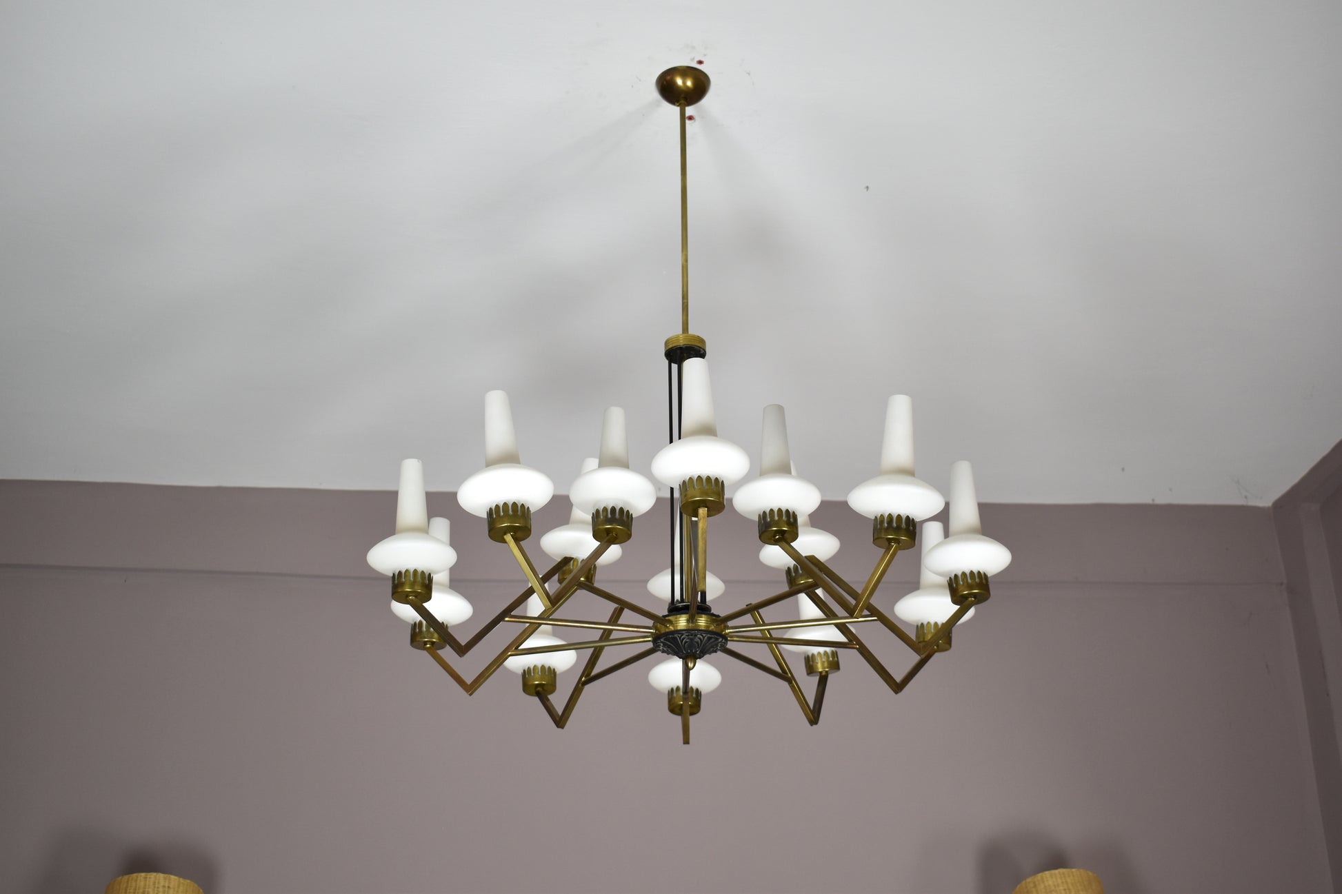 Lustre italien à 15 lampes des années 1950 attribué à Stilnovo