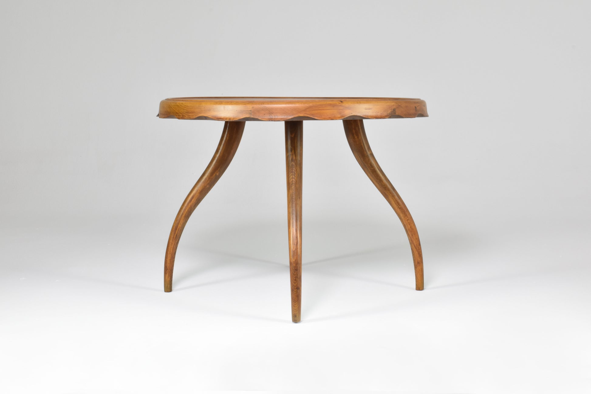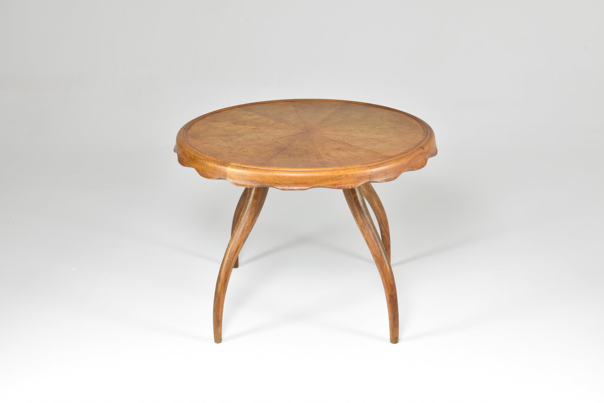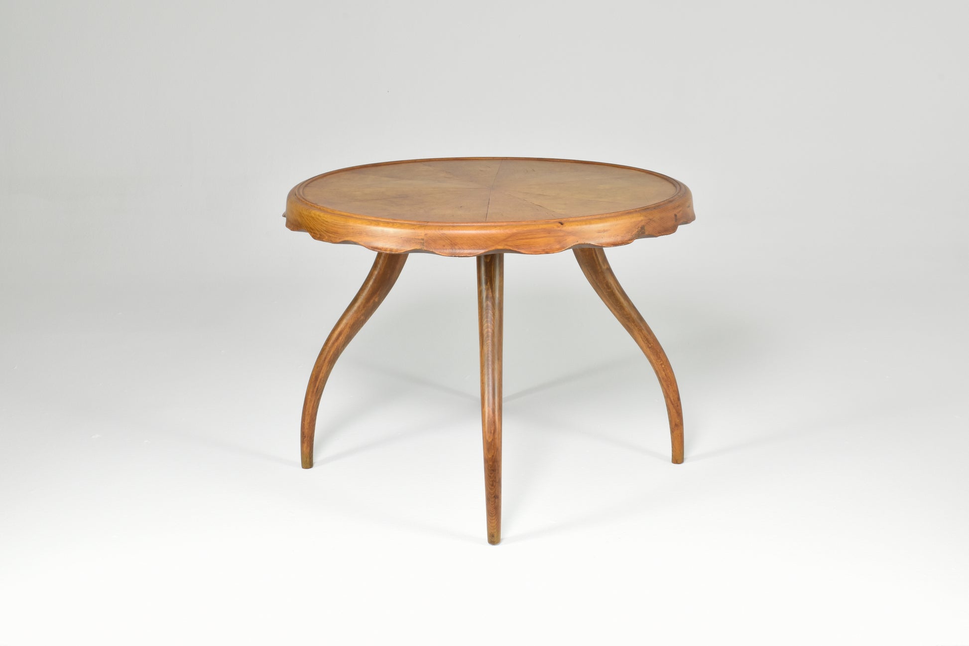 Superbe table d'appoint ou table basse italienne avec de magnifiques détails sculptés par le célèbre Osvaldo Borsani. Italie. Années 1950
