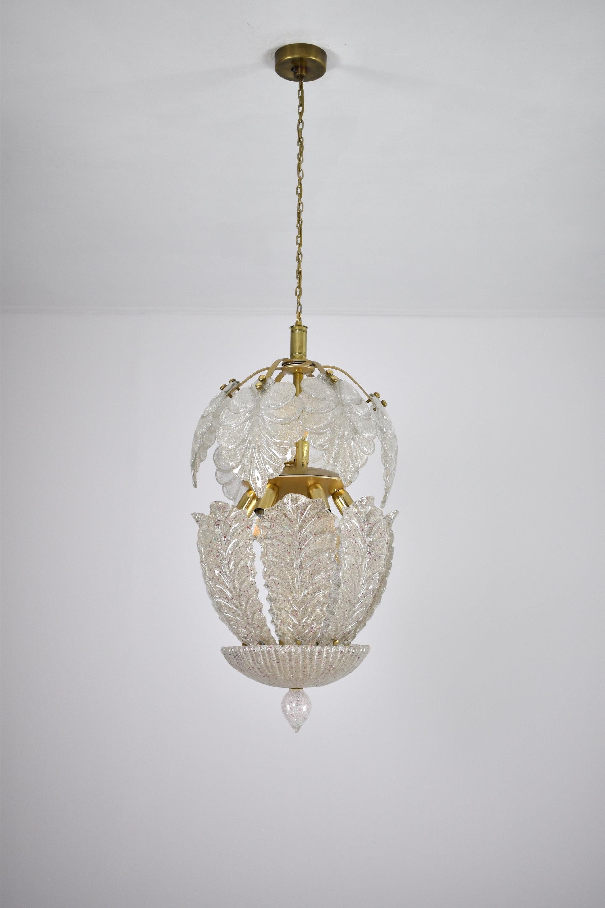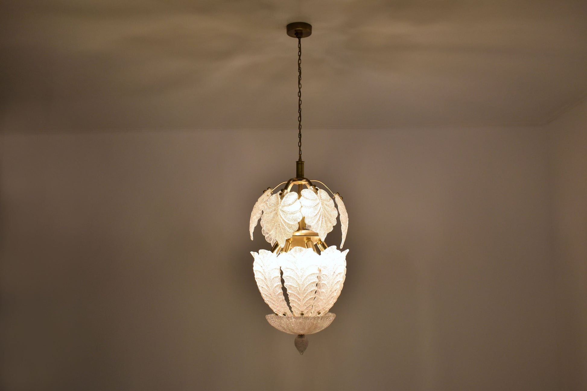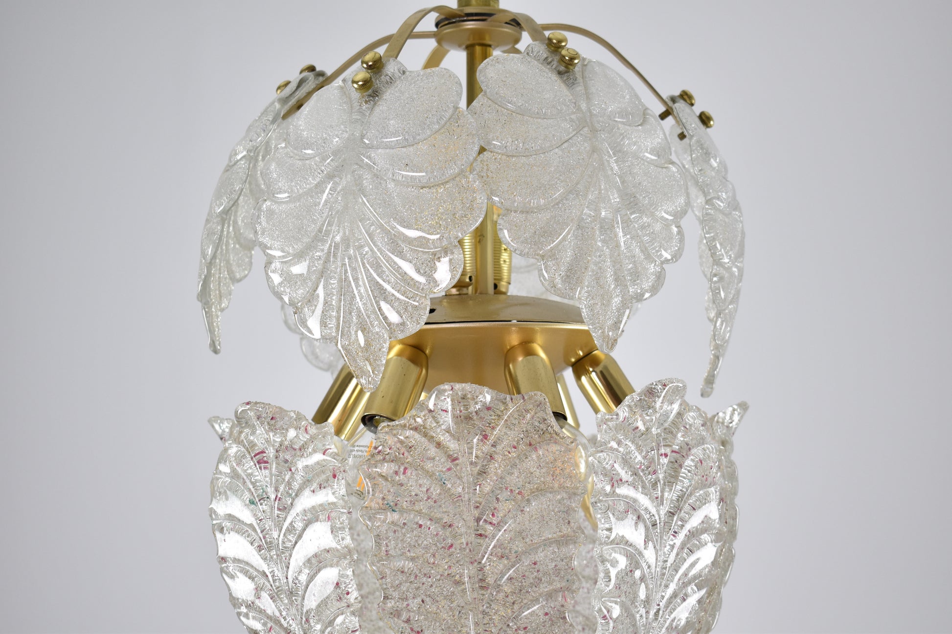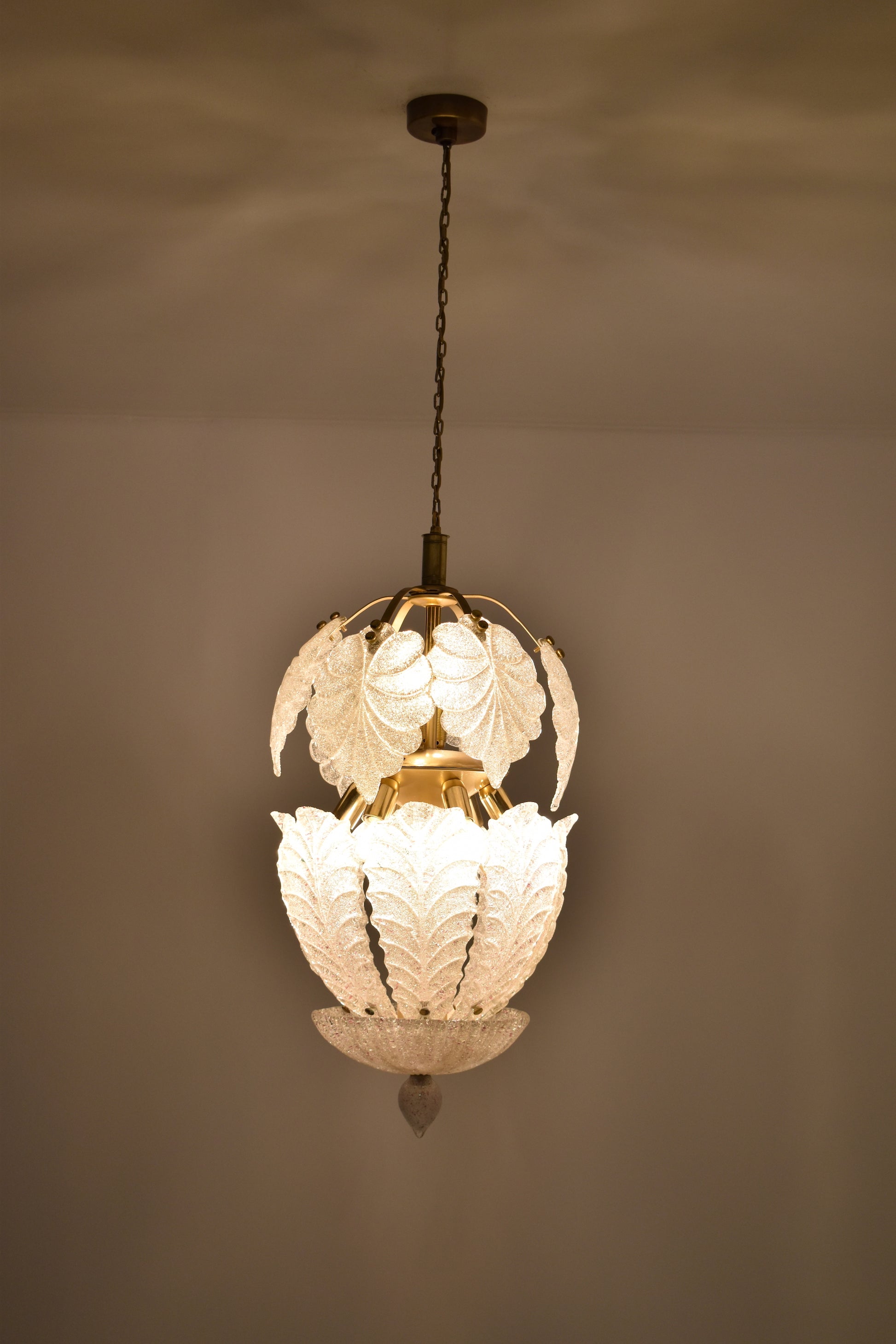 Suspension en verre de Murano italien des années 1970 en forme de feuille par Barovier Toso