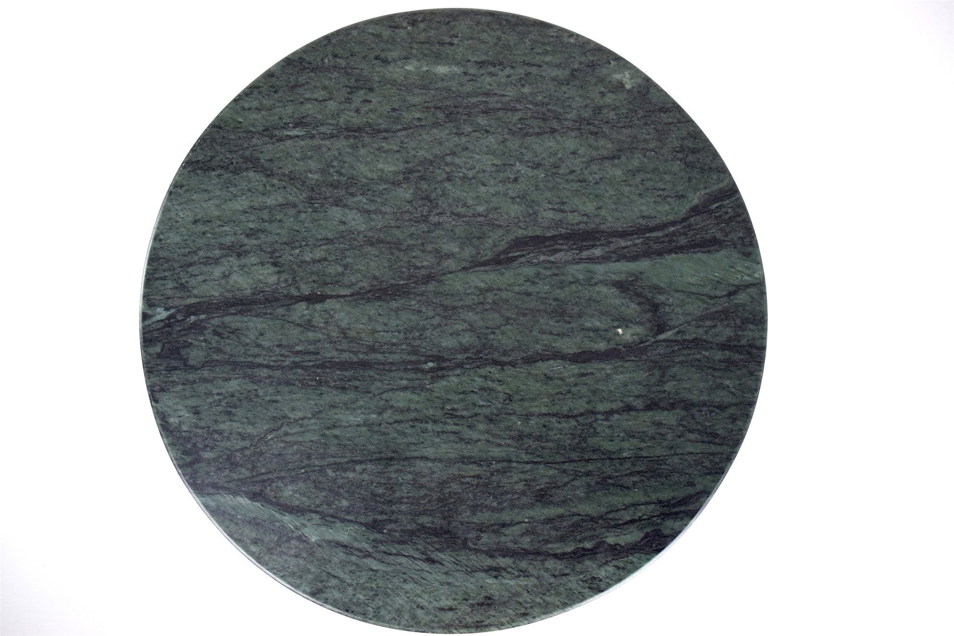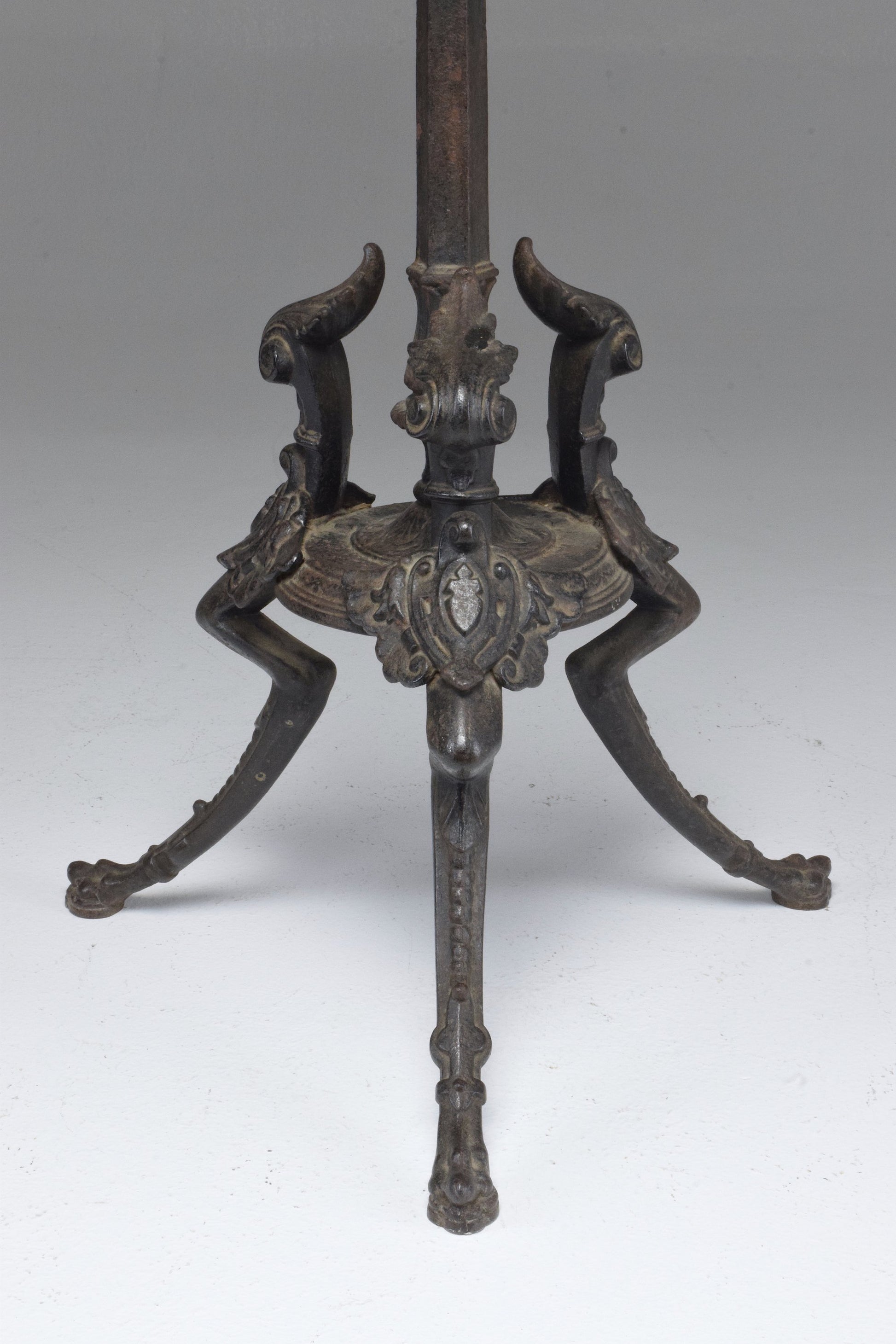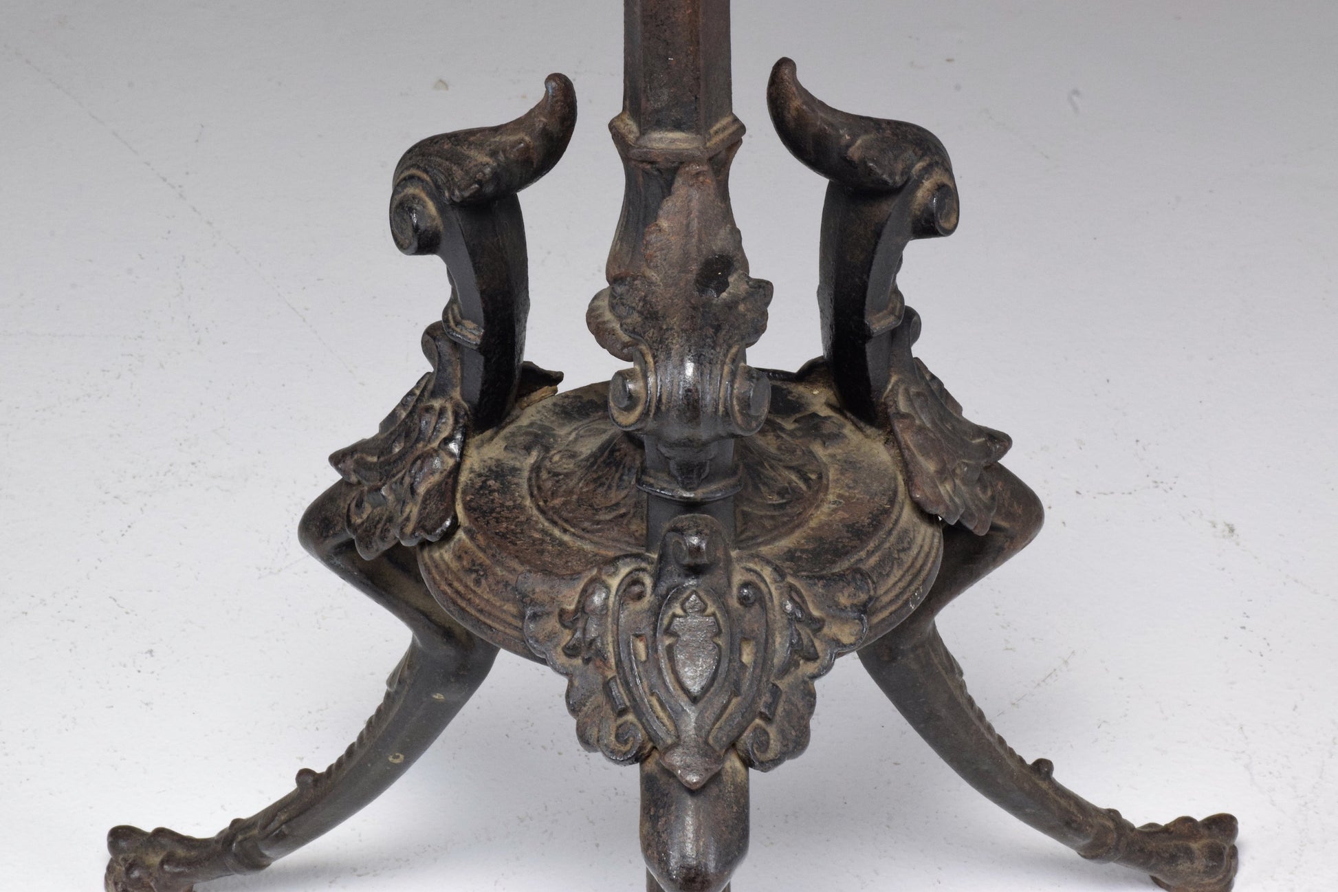 Guéridon du XIXe siècle de style Napoléon III avec structure tripode en fer forgé et détails finement sculptés. Restauré avec du marbre vert italien.