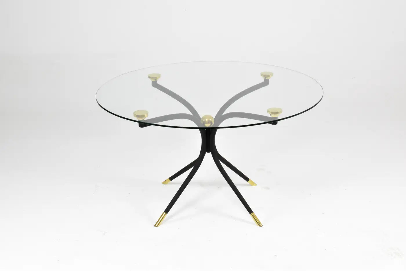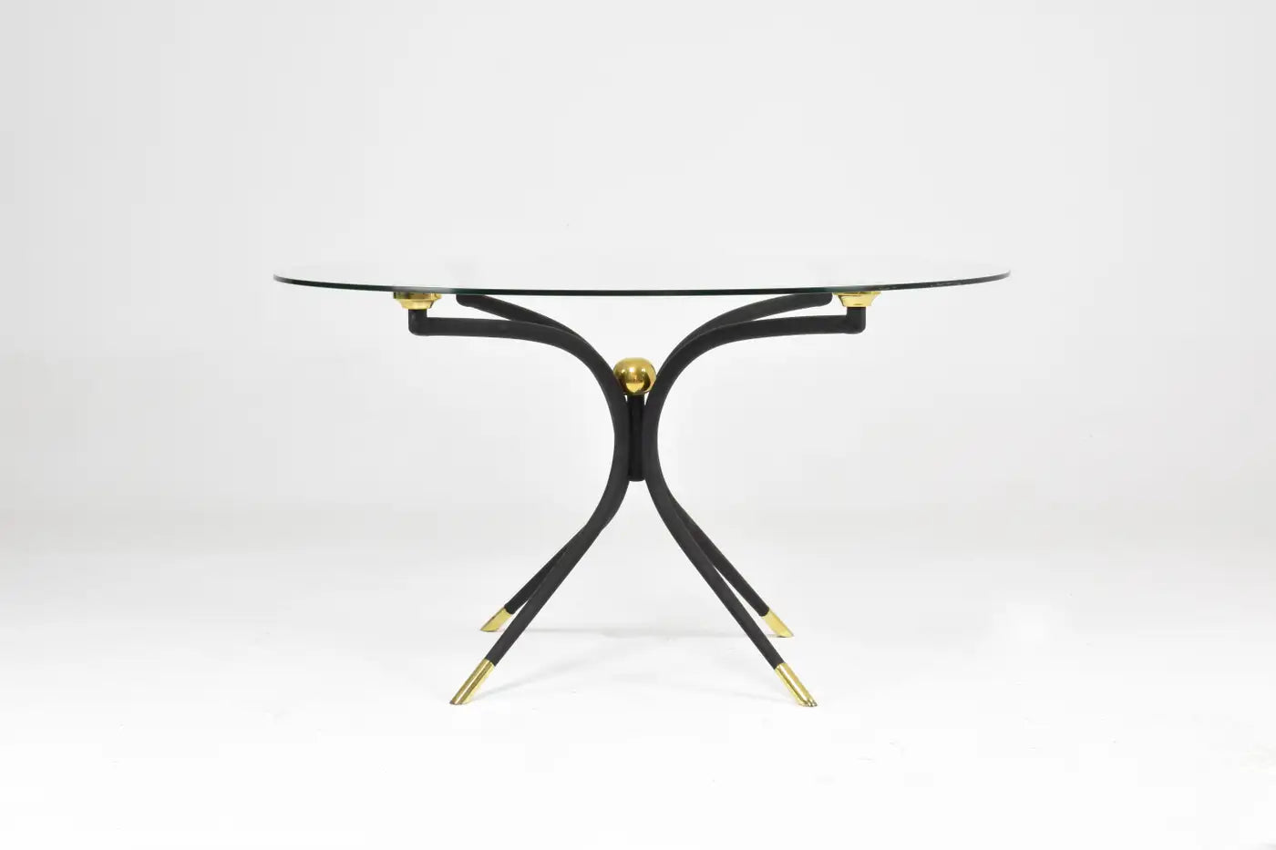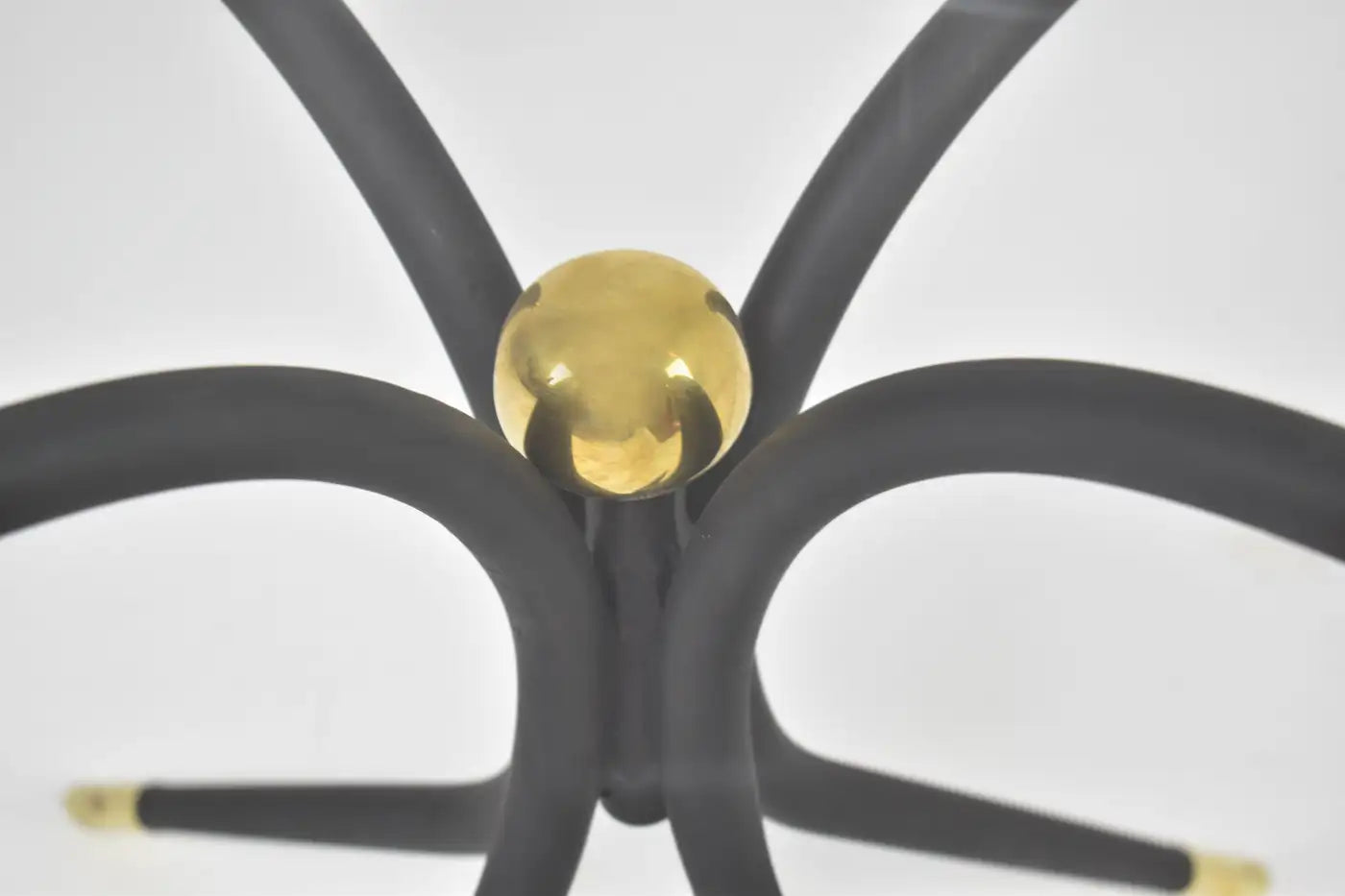 ARTE Handcrafted Sculptural Iron and Brass Table with Round Glass Top