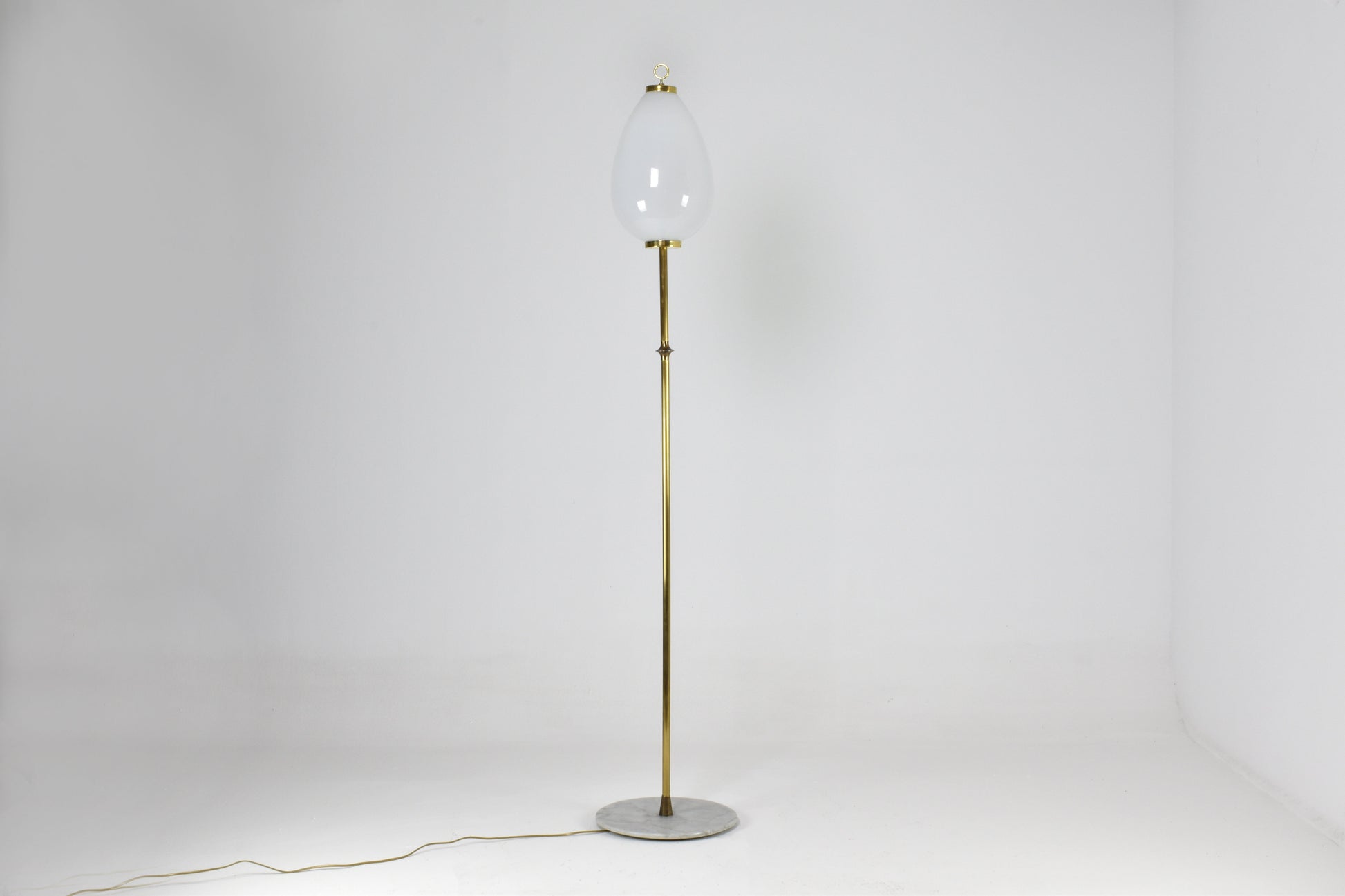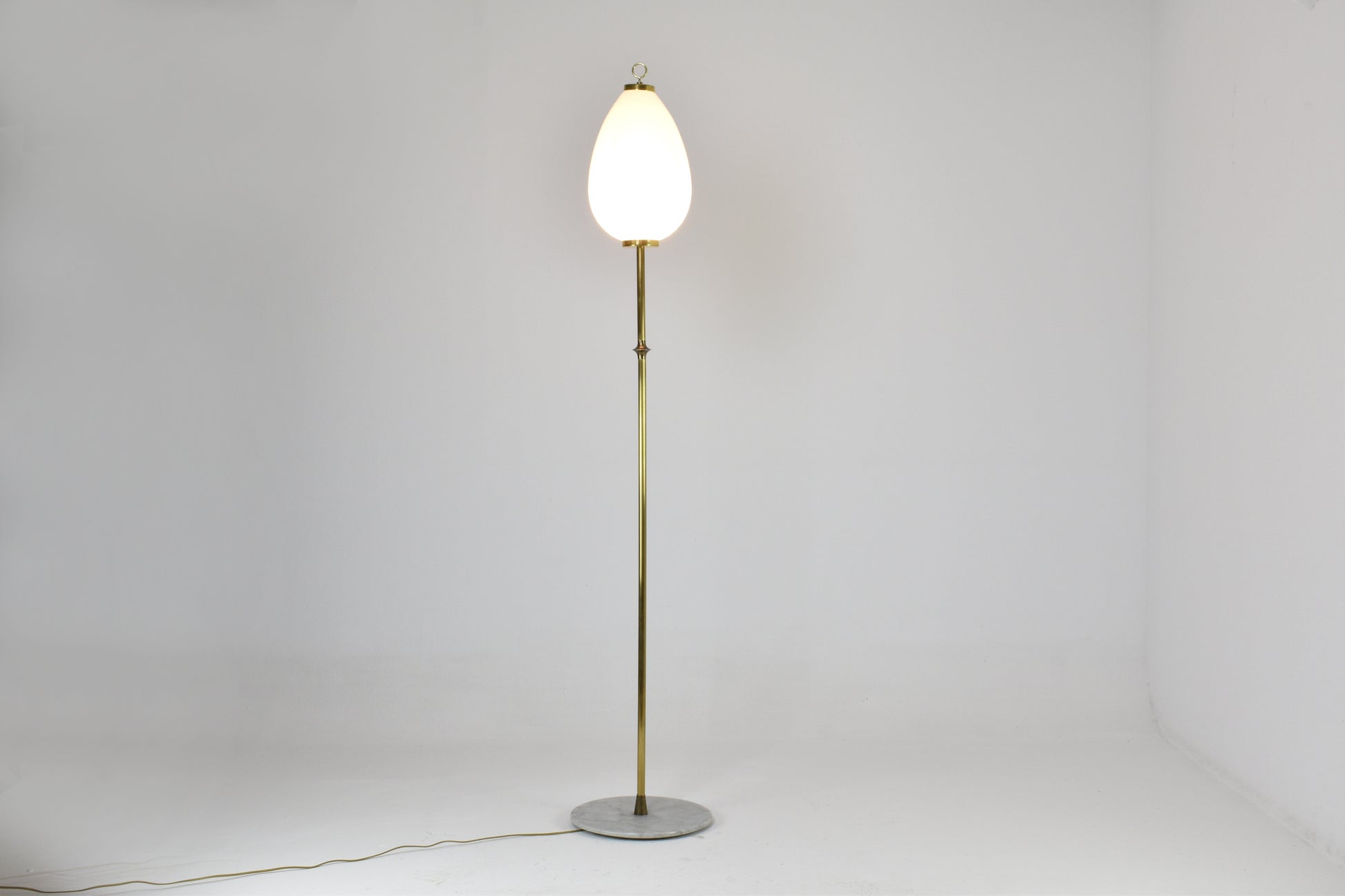Athena Brass and Opaline Glass Floor Lamp with Marble Base, Jonathan Amar Studio