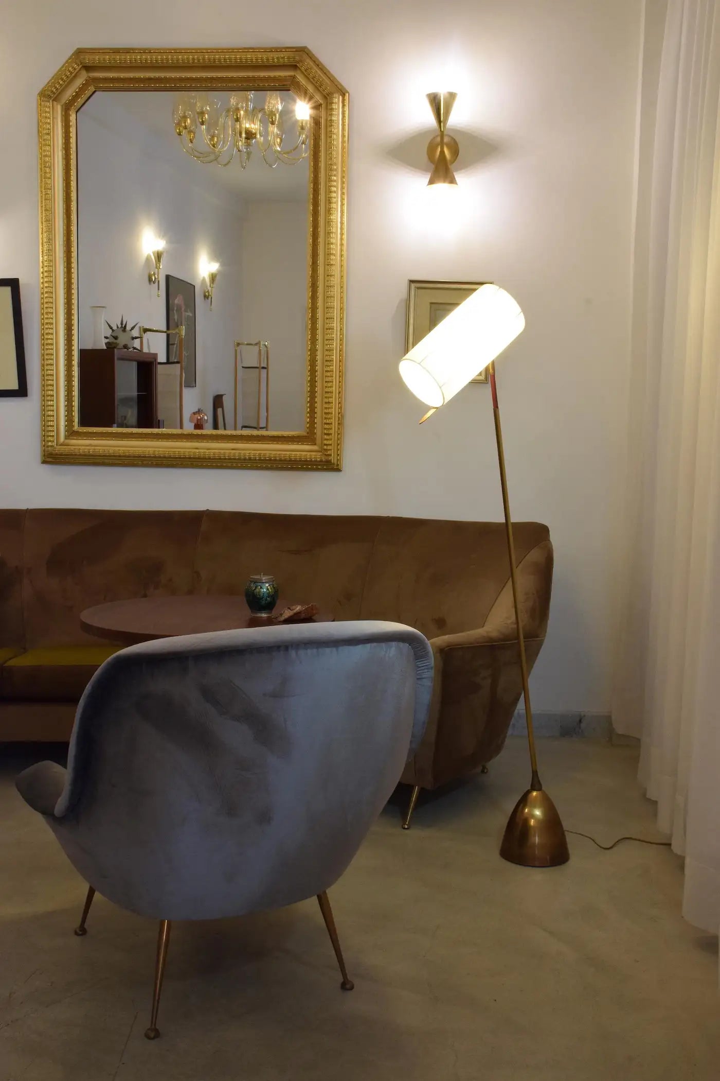 Le bras en laiton est équipé de détails en cuir sur le dessus.
