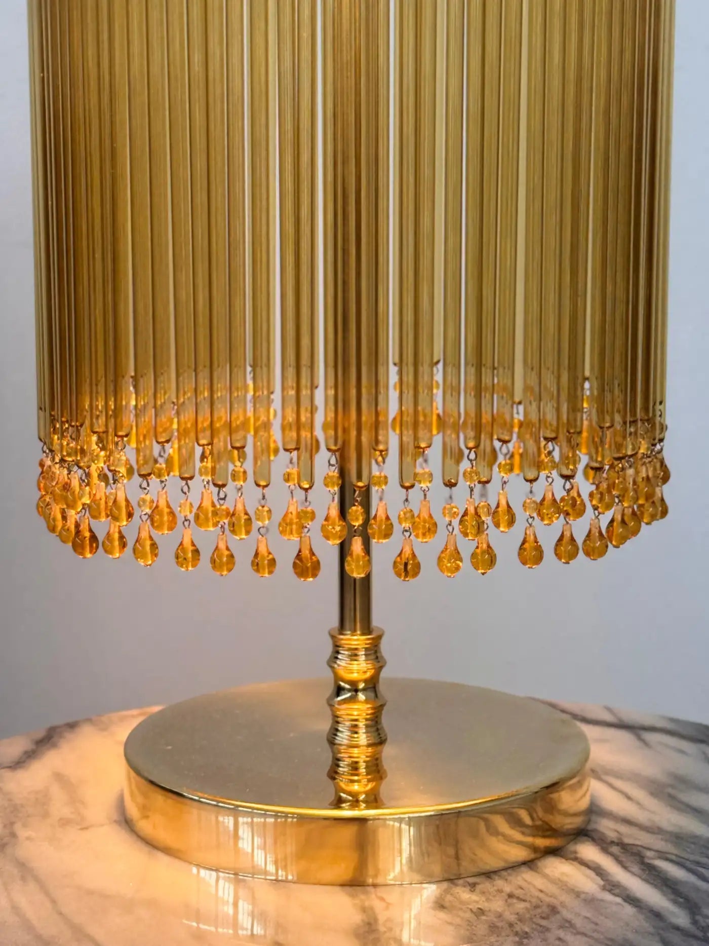 IDRIA‑T2 Brass Table Lamp with Amber Glass Drops