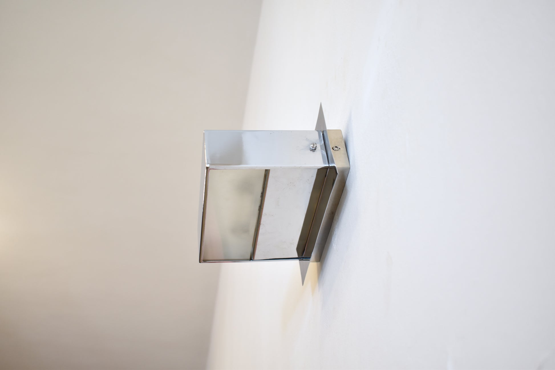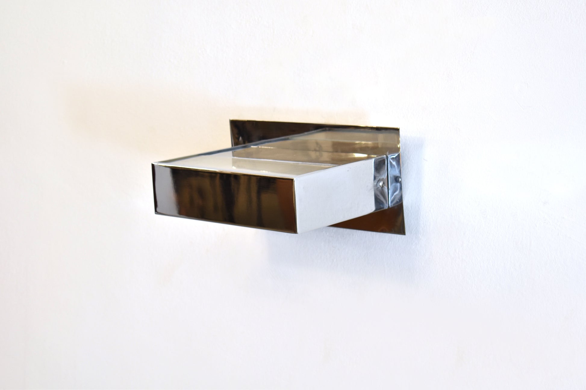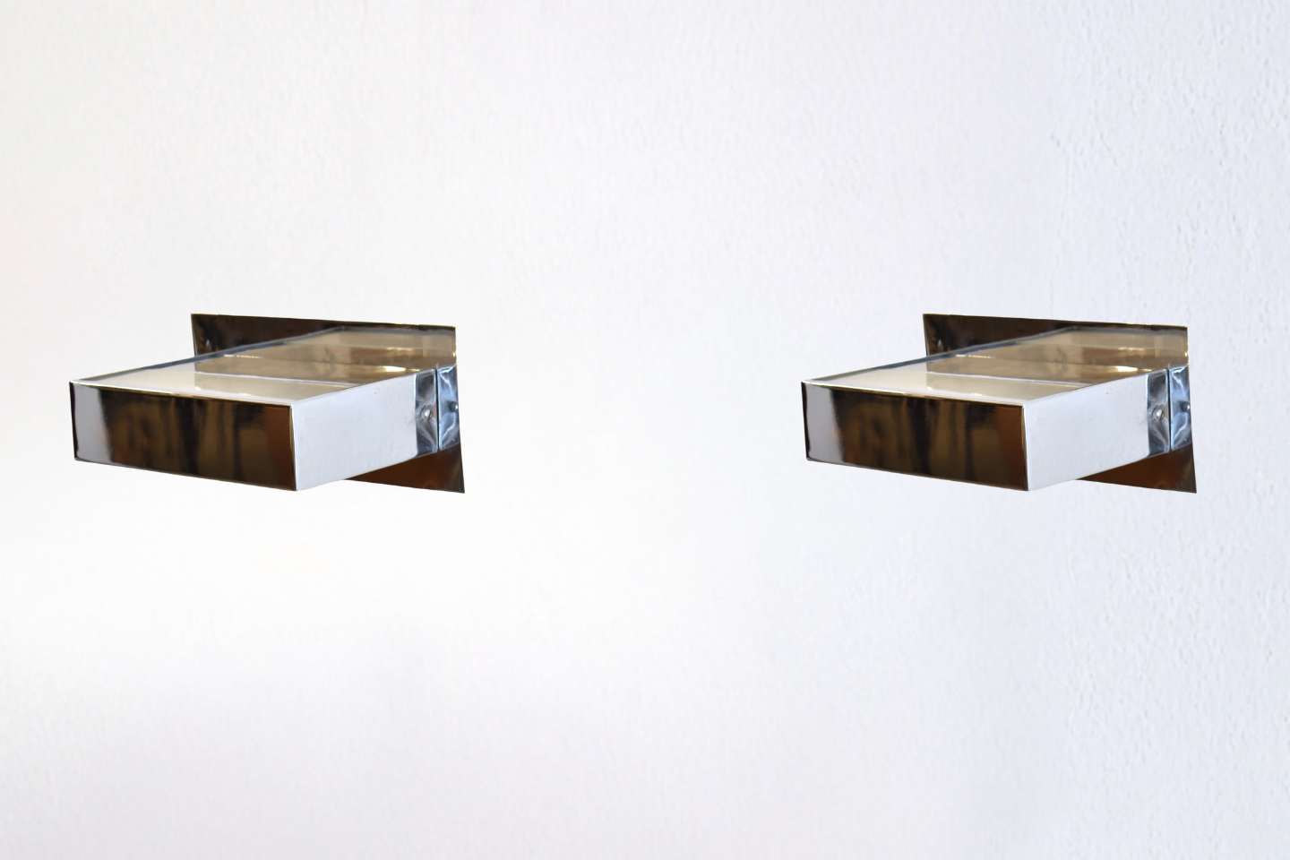 Paire d'appliques murales minimalistes françaises en acier inoxydable des années 1980