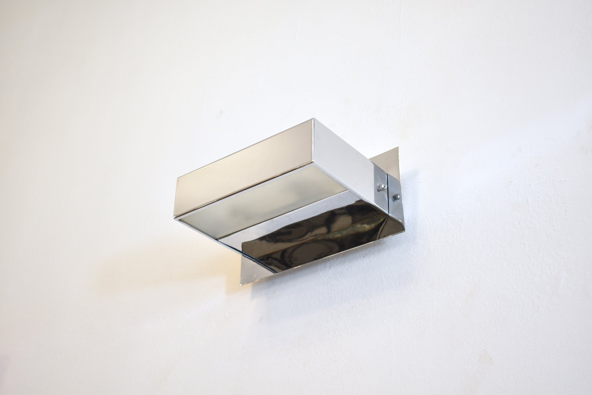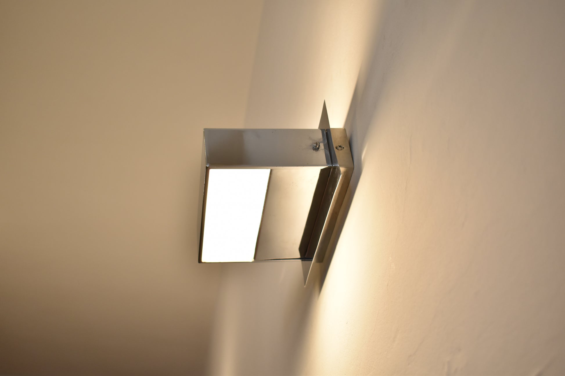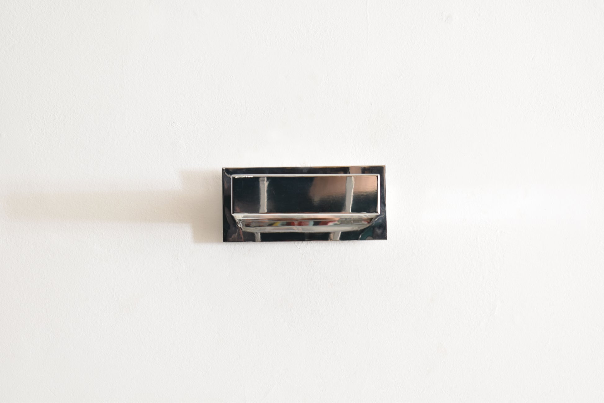 Paire d'appliques murales minimalistes françaises en acier inoxydable des années 1980