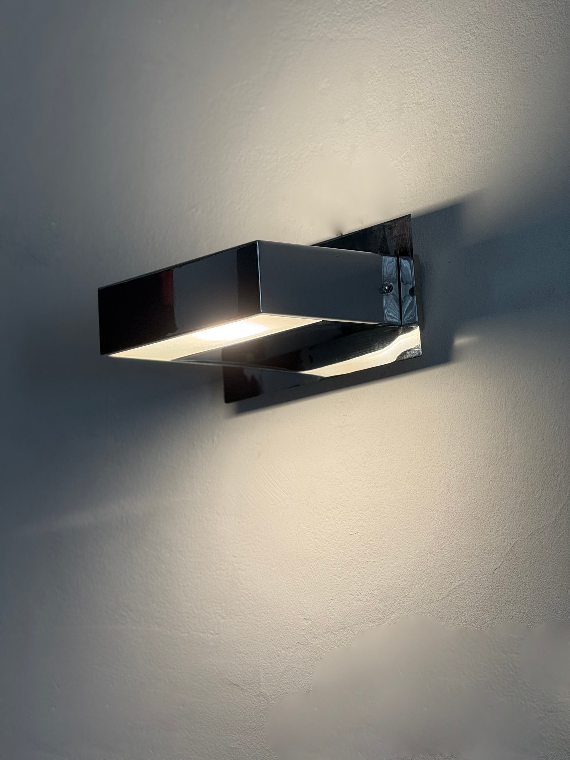 Deux appliques murales françaises des années 1980, caractérisées par leur silhouette géométrique et leur finition polie. Conçues pour diffuser la lumière vers le haut et vers le bas, ces appliques allient précision architecturale et esthétique minimaliste raffinée.