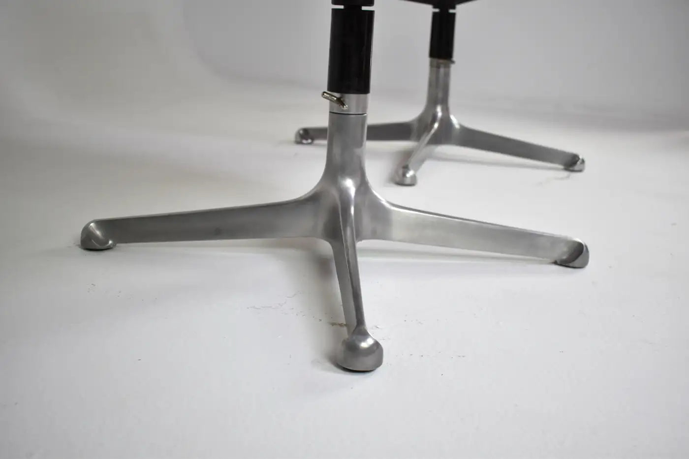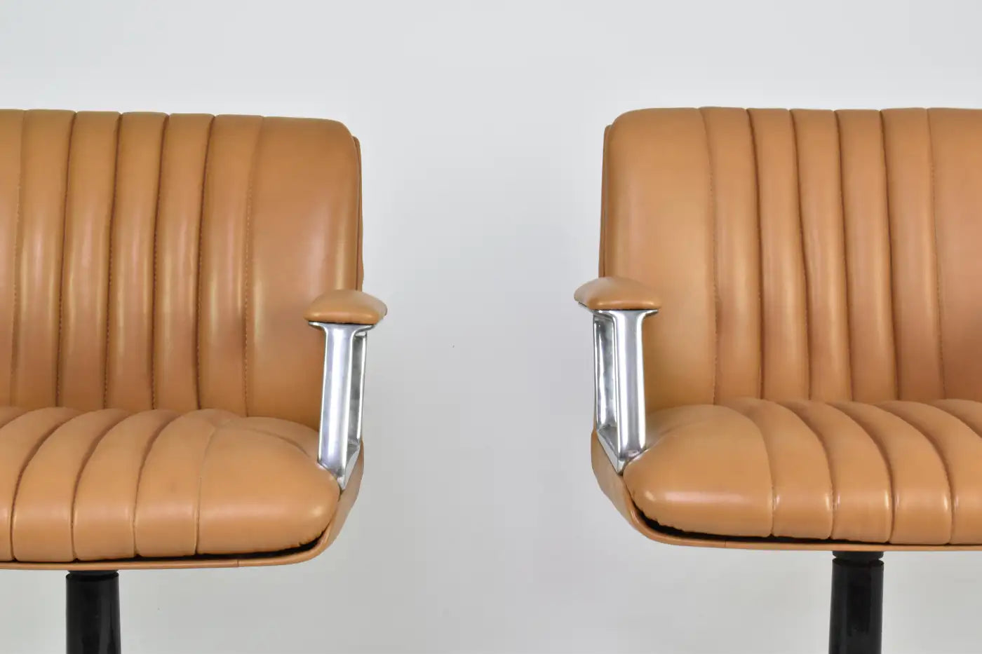 Voici une paire de chaises de bureau Osvaldo Borsani, soigneusement restaurées. Chaque chaise a été soigneusement restaurée avec un nouveau cuir italien brun clair. Réglable en hauteur et pivotante.