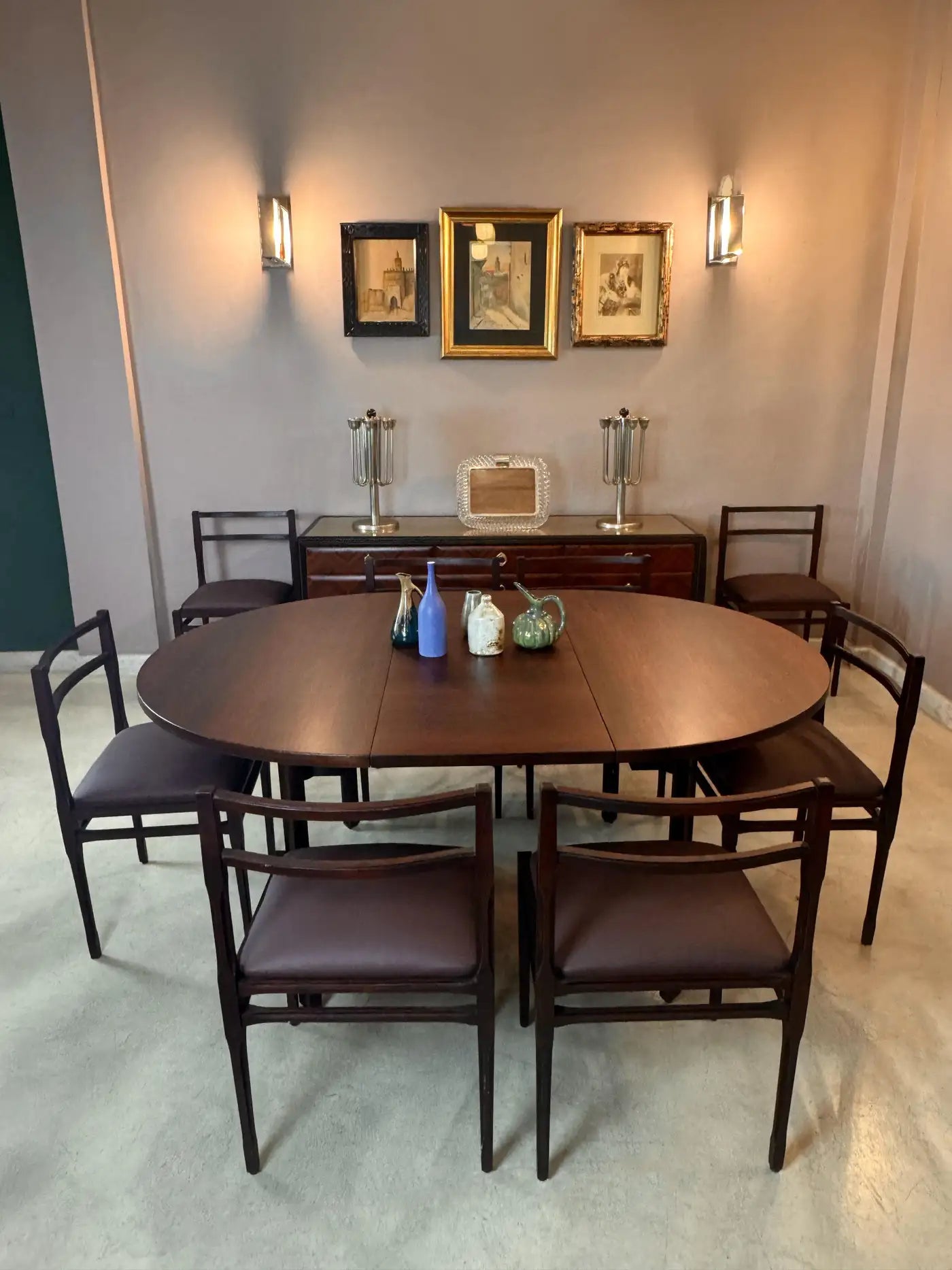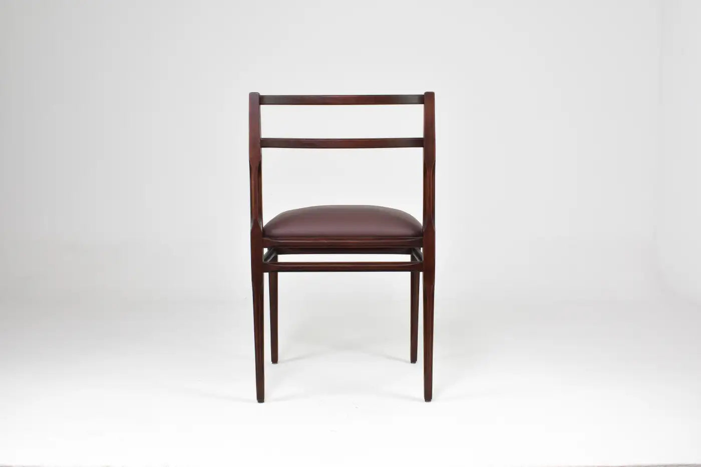 Un ensemble de huit chaises de salle à manger italiennes méticuleusement restaurées, datant des années 1970 et attribuées à l'esthétique raffinée de Stildomus.