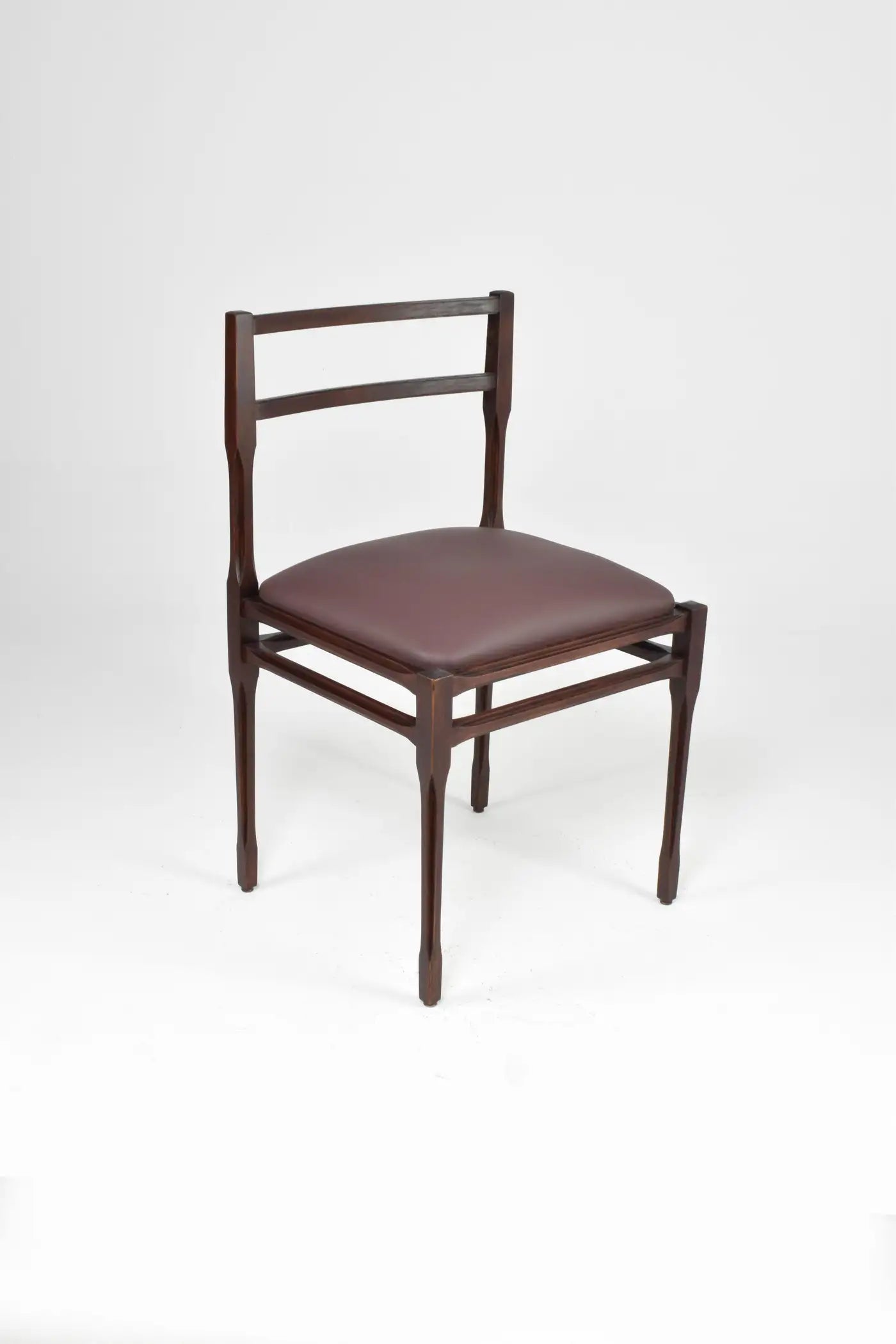 Ces pièces de collection présentent une interaction élégante entre un bois riche teinté foncé et un revêtement en cuir marron.