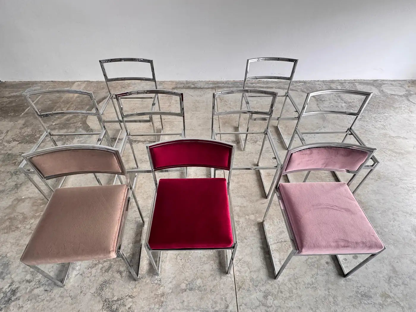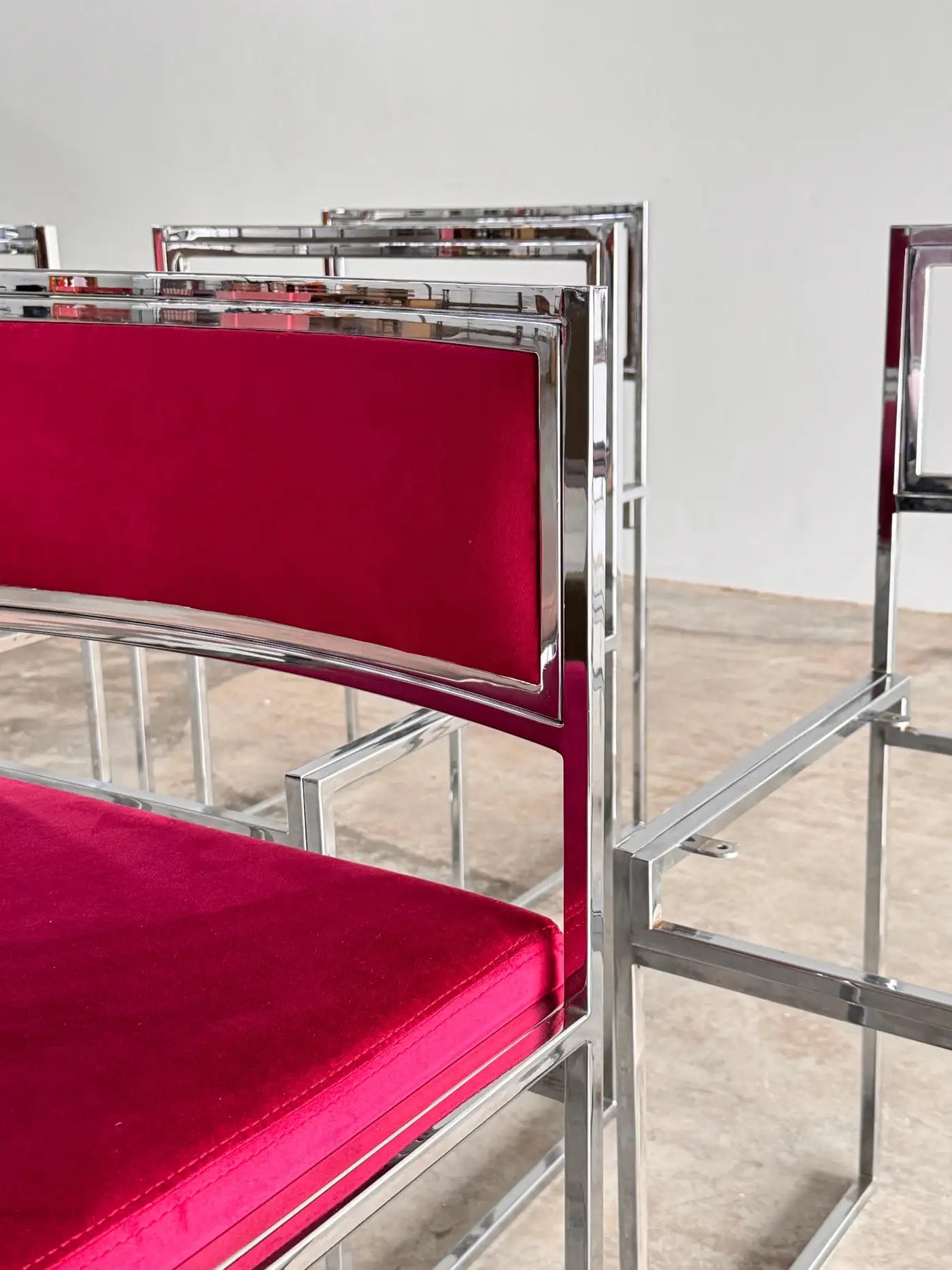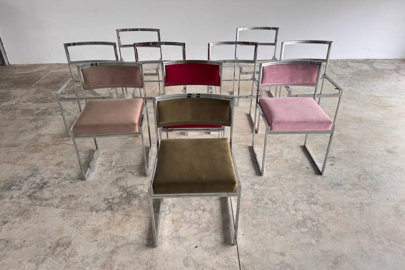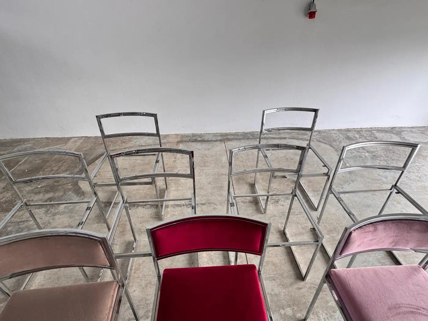 Lot de 8 chaises de salle à manger « SQ-AL » en chrome et velours par Willy Rizzo, France, années 1970