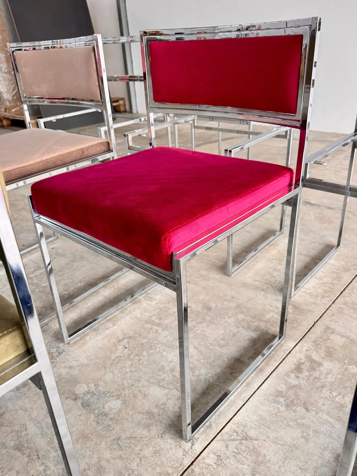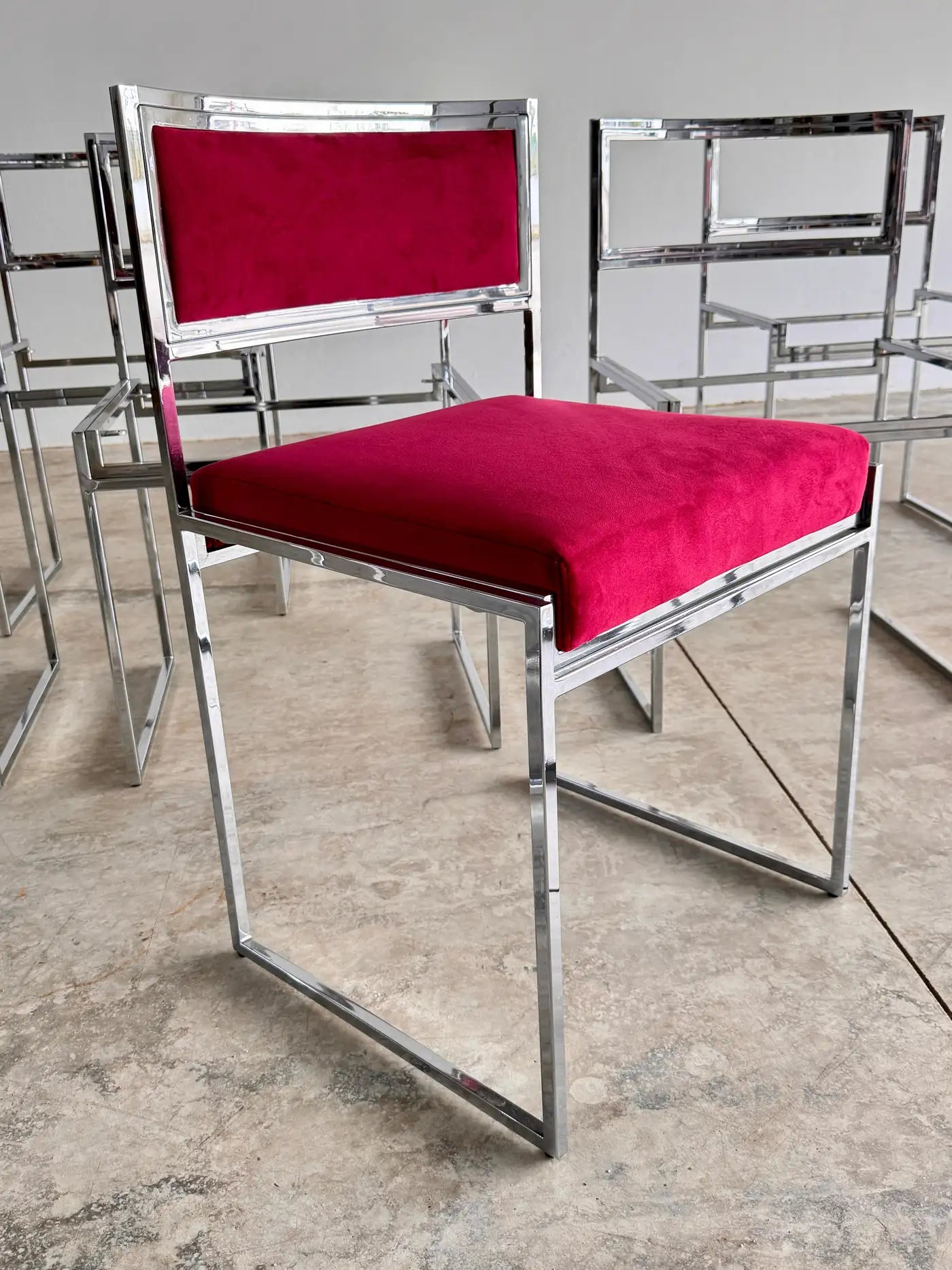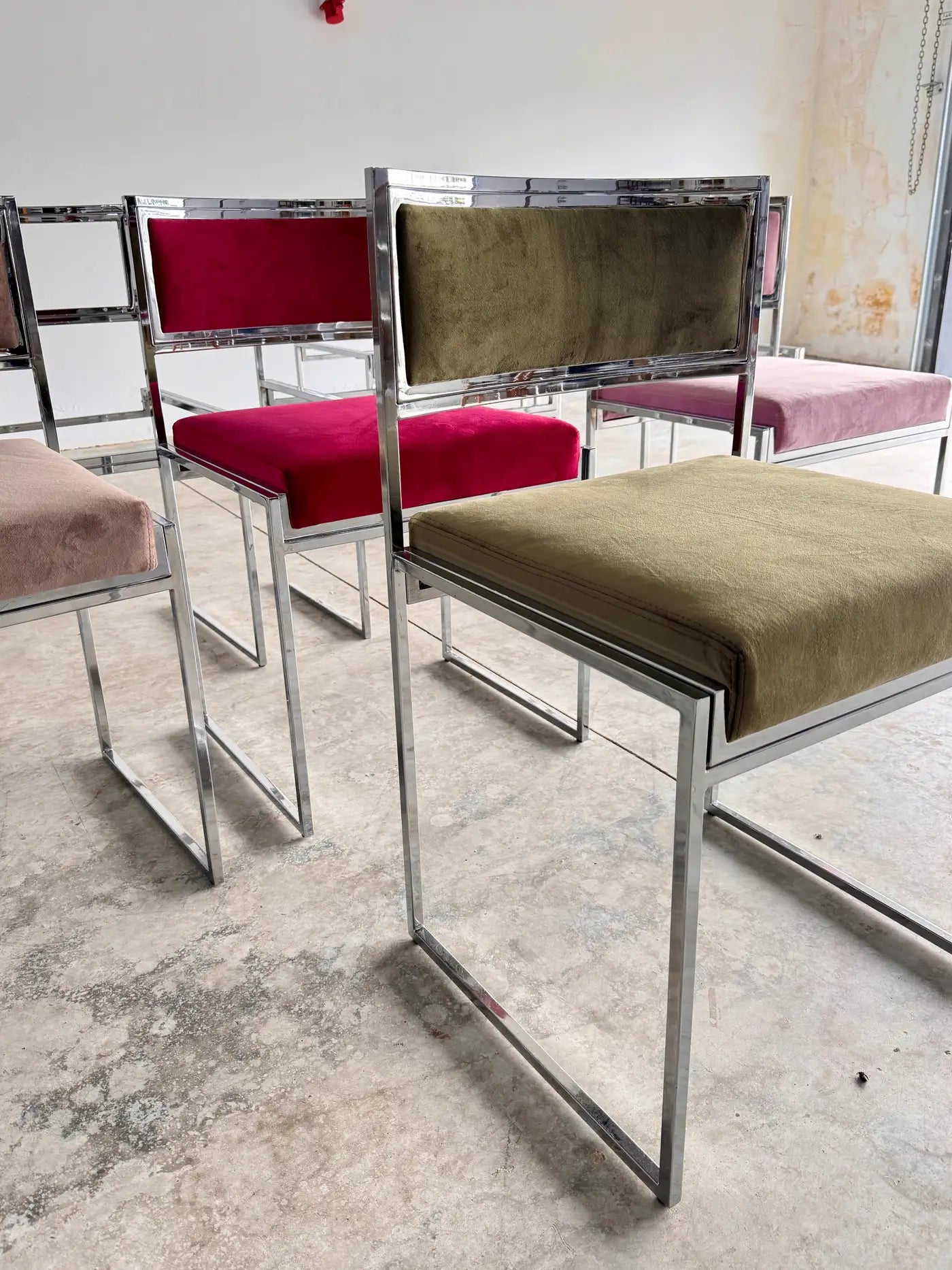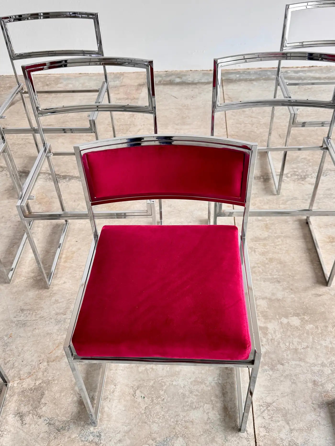 Lot de 8 chaises de salle à manger « SQ-AL » en chrome et velours par Willy Rizzo, France, années 1970