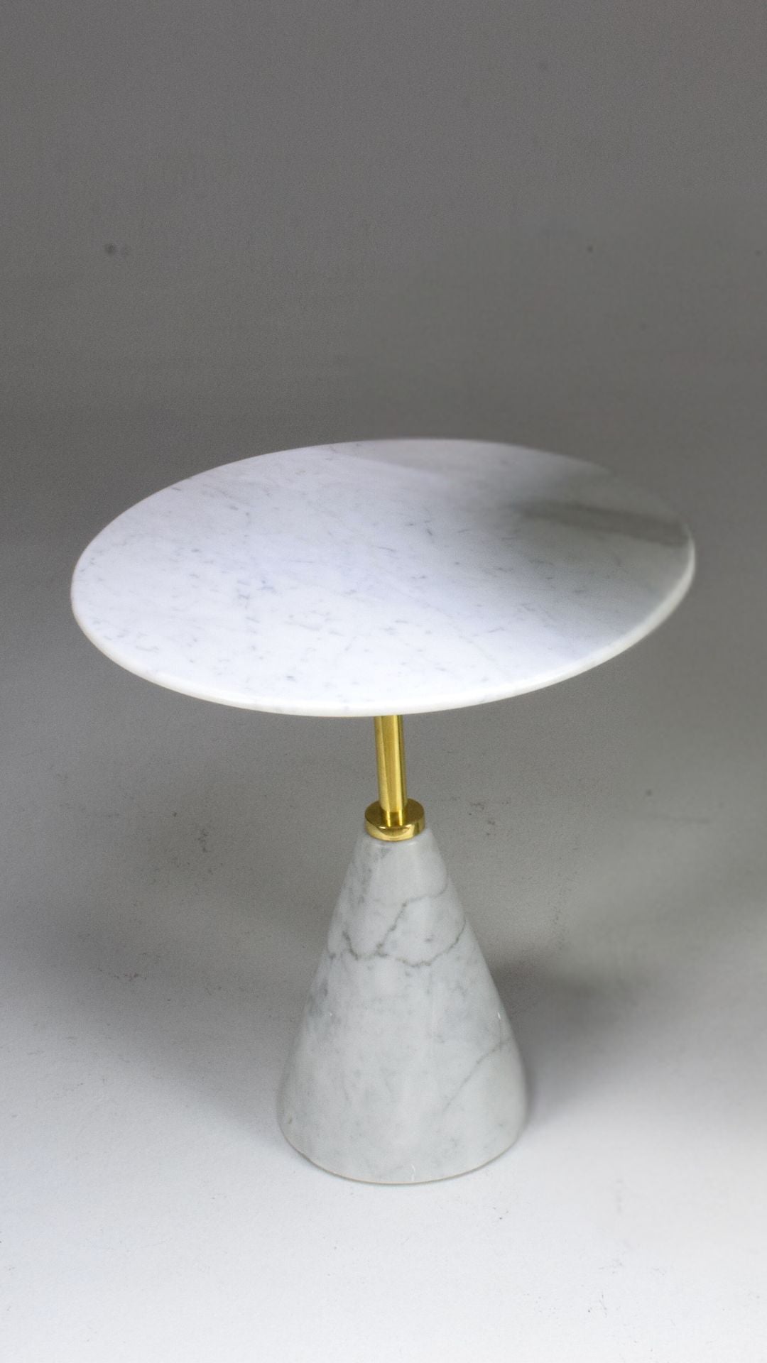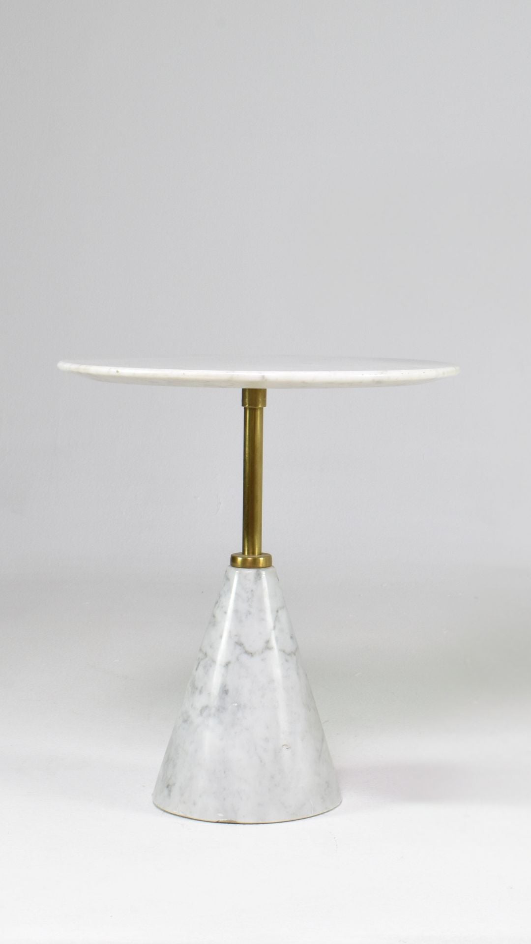 Un guéridon personnalisable, conçu avec un plateau en marbre et un piètement en laiton massif ou en marbre. Différentes hauteurs et dimensions permettent diverses possibilités d'agencement.