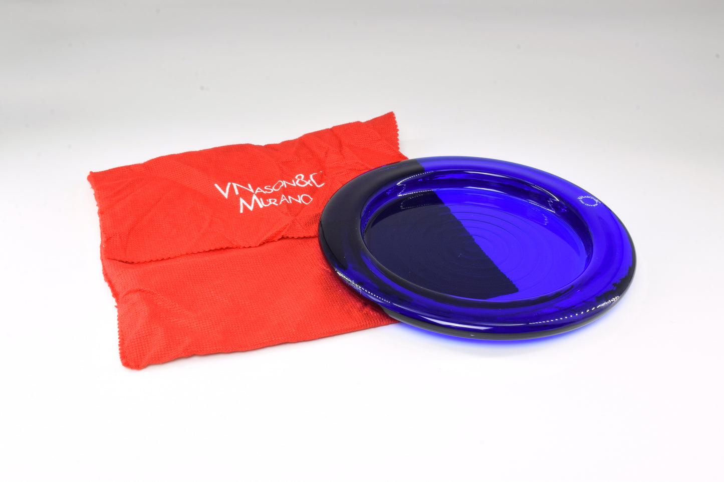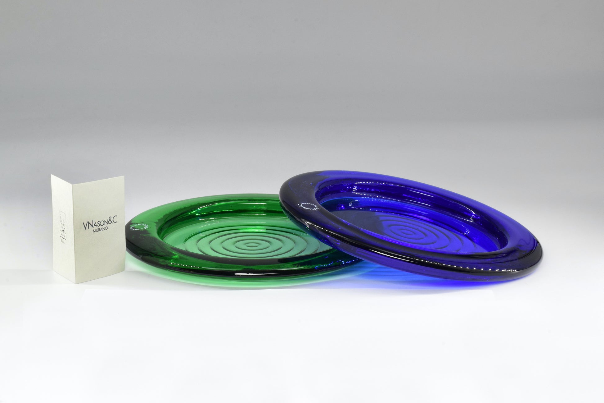 Two Murano art glass decorative blue and green dishes from V Nason & Co. Italy, circa 1970s.