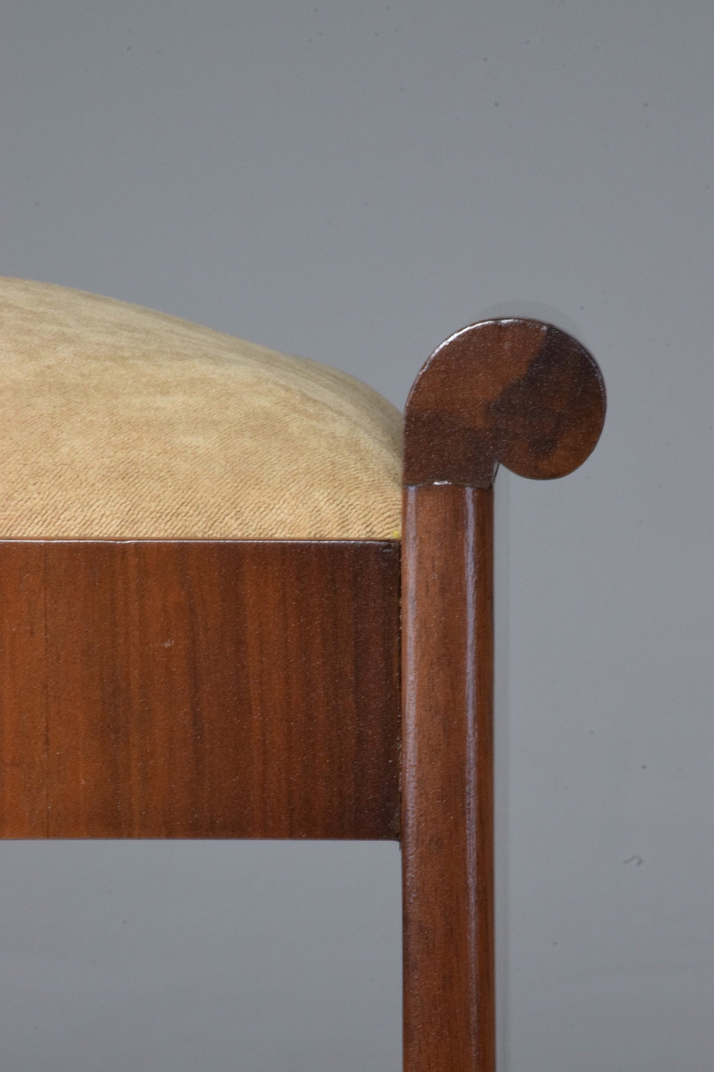 A 1930's stylish Italian piano stool in solid walnut in fully restored condition with new velvet upholstery.