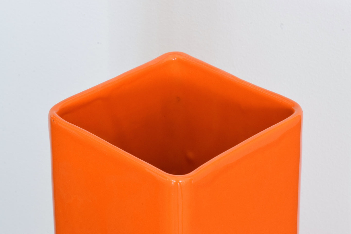 An Italian Mid-Century Modern vintage ceramic flower vase by notable Italian ceramics company specializing in ceramic wall and floor tiles. Designed in a beautiful bright orange shade, circa 1967, Italy, 1960s.
