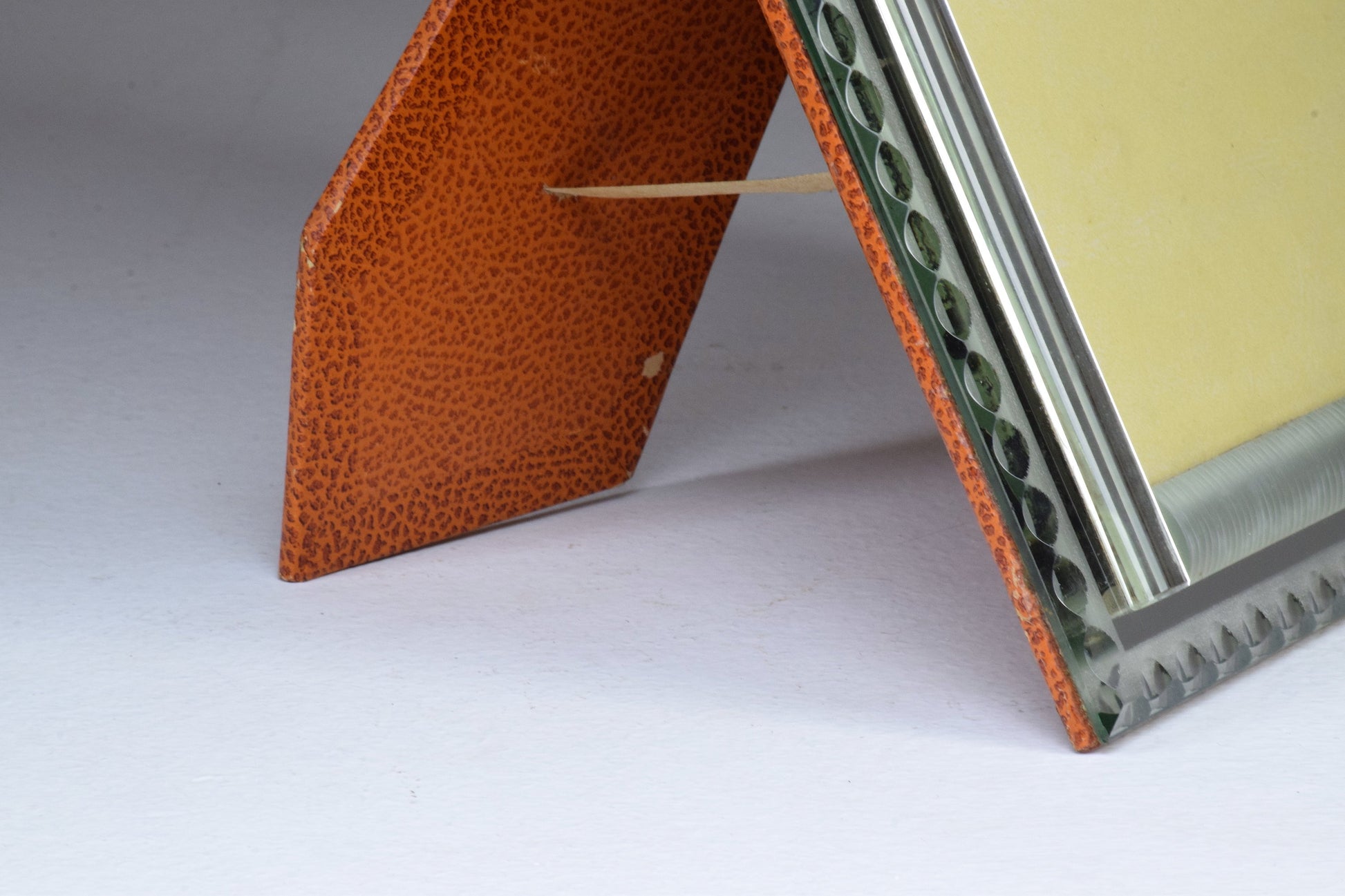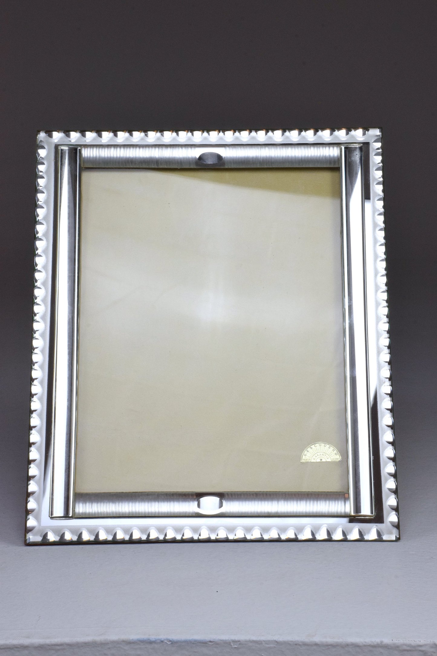A beautiful 20th-century vintage rectangular Art Deco style frame designed in cut mirrored glass. Labeled with the "G Escudero" sticker. In beautiful condition, perfect gift idea and decorative addition for any living and bedrooms areas.