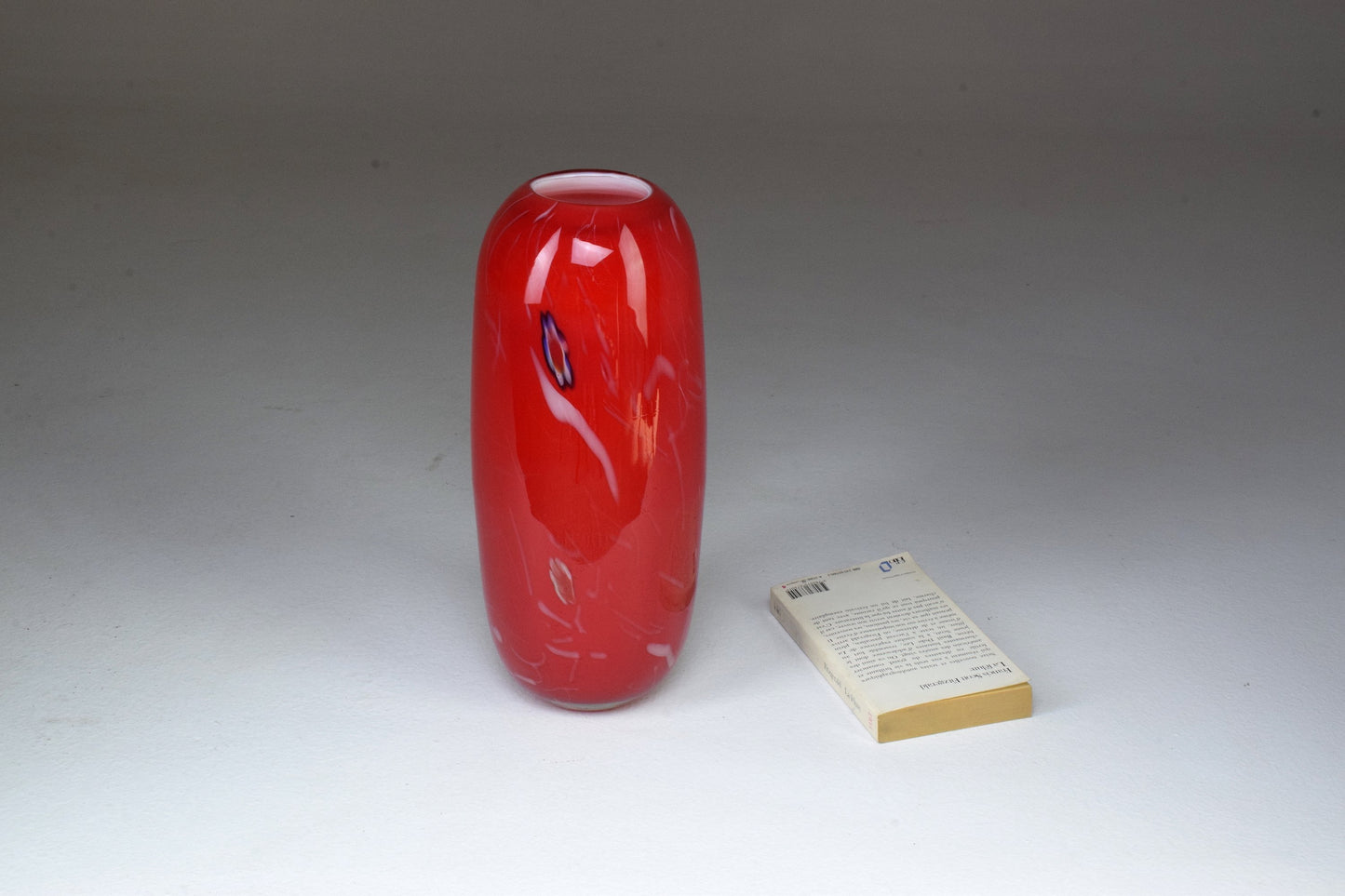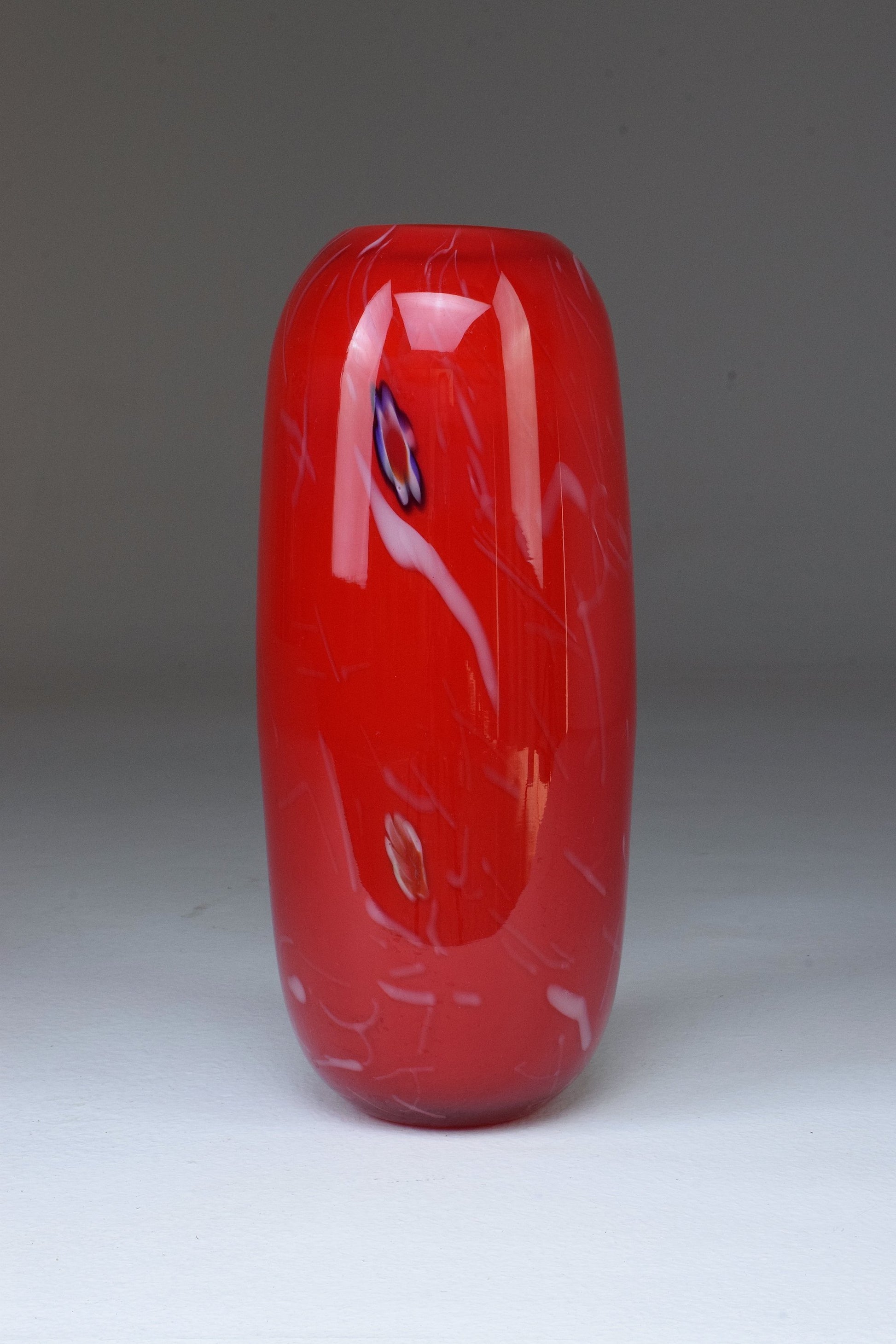 Technique: Incamiciato & sparce murrine vase crafted with double-cased color with a few murrine accents.