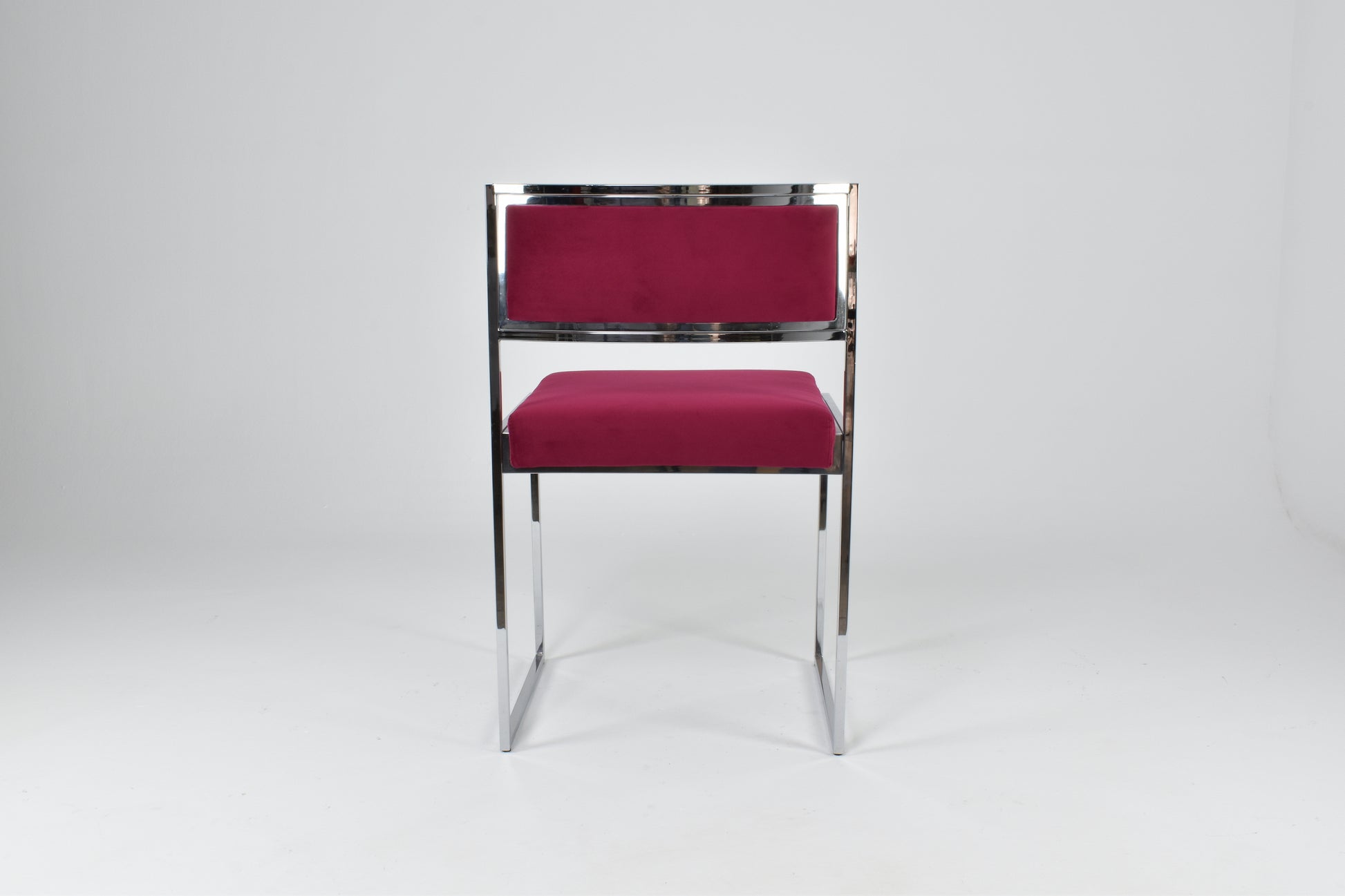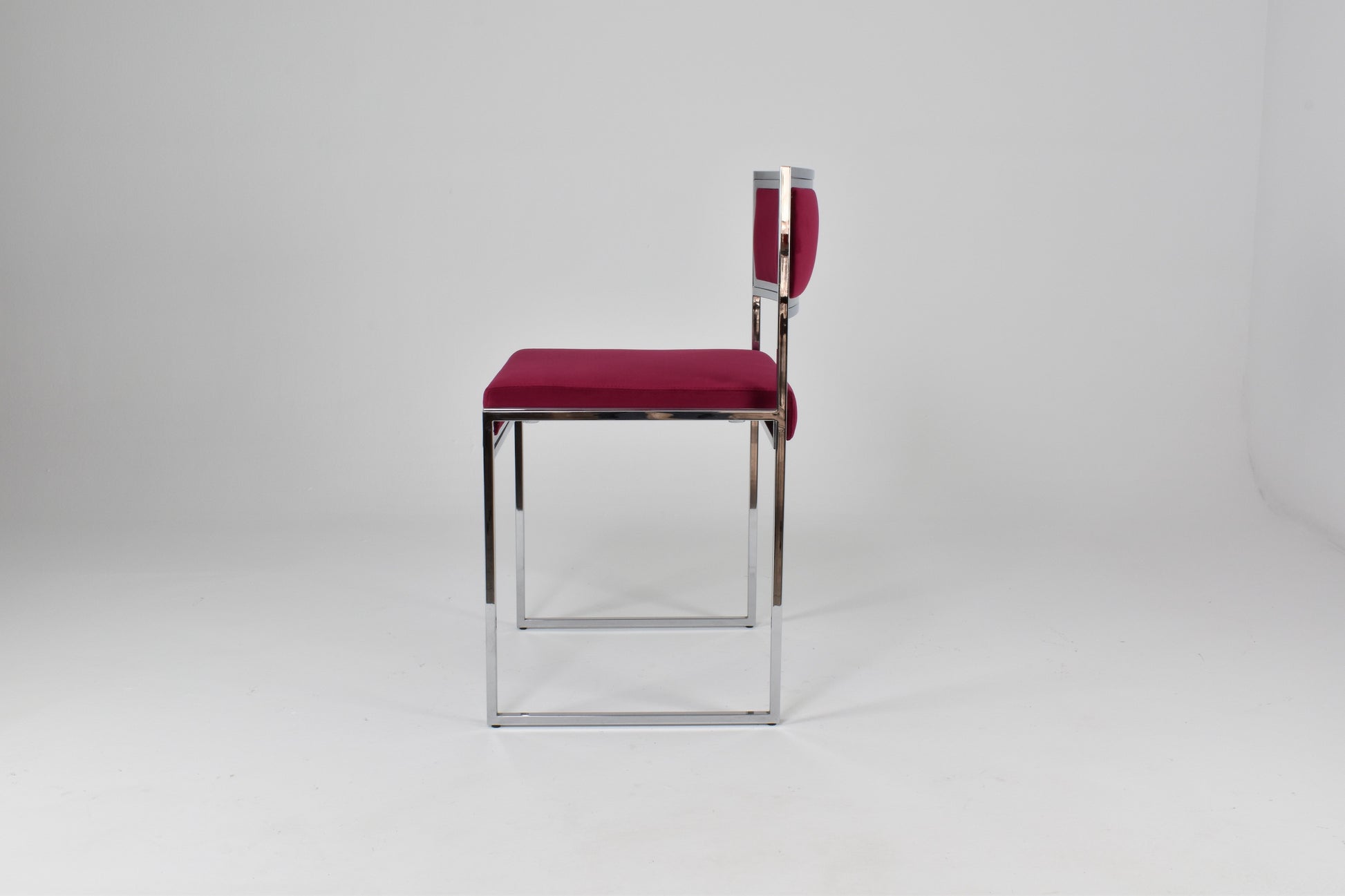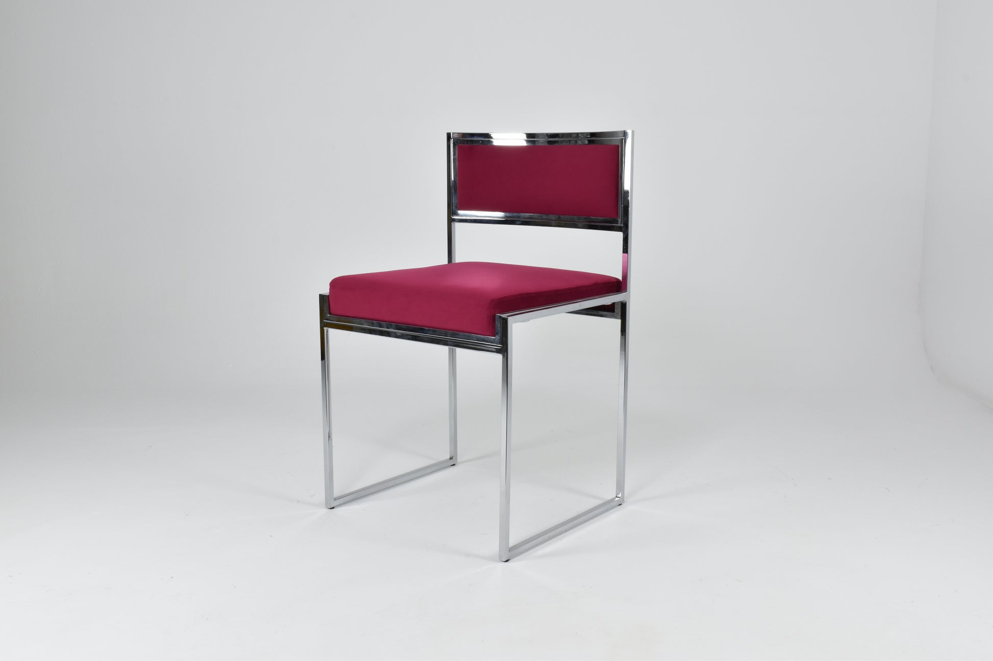 Italian Set of 4 Chrome & Velvet "SQ-AL" Dining Chairs by Willy Rizzo, 1970s
