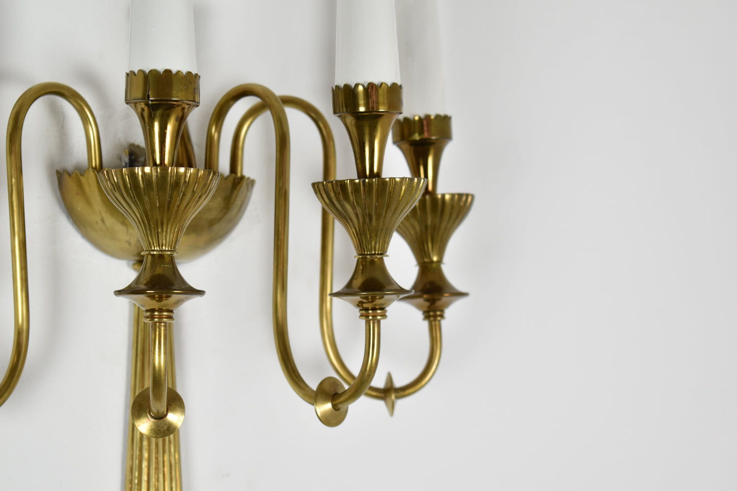 Pair of Four-Light Italian Brass Candelabra Sconces, 1940s