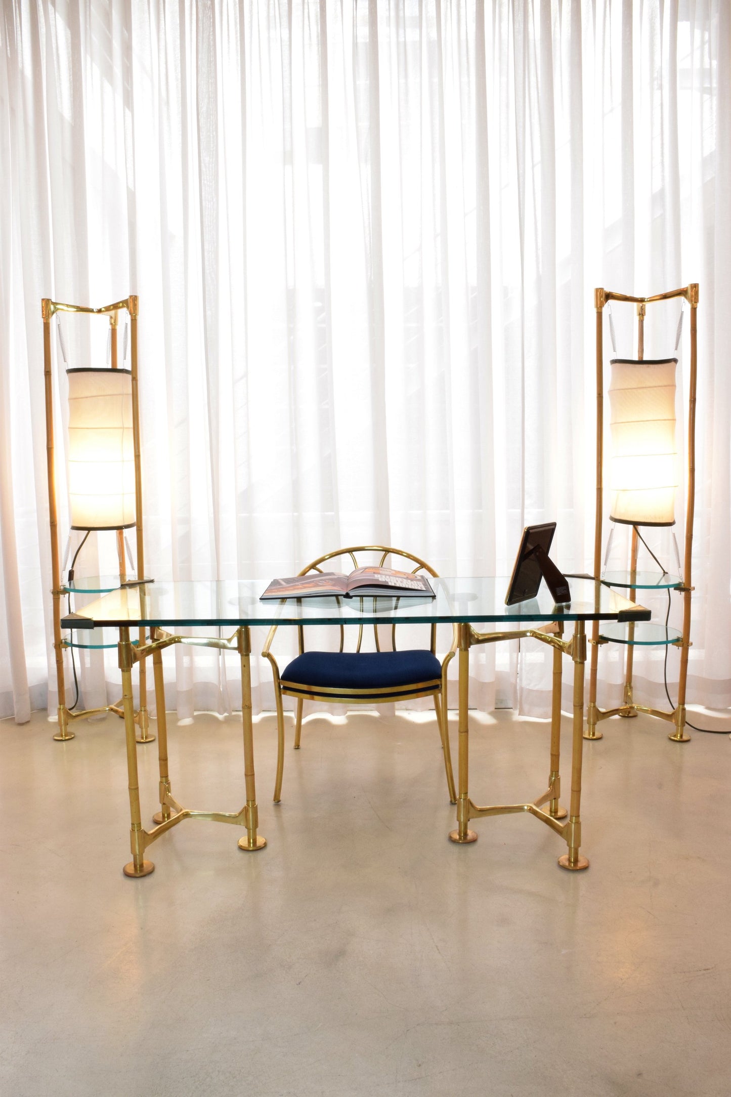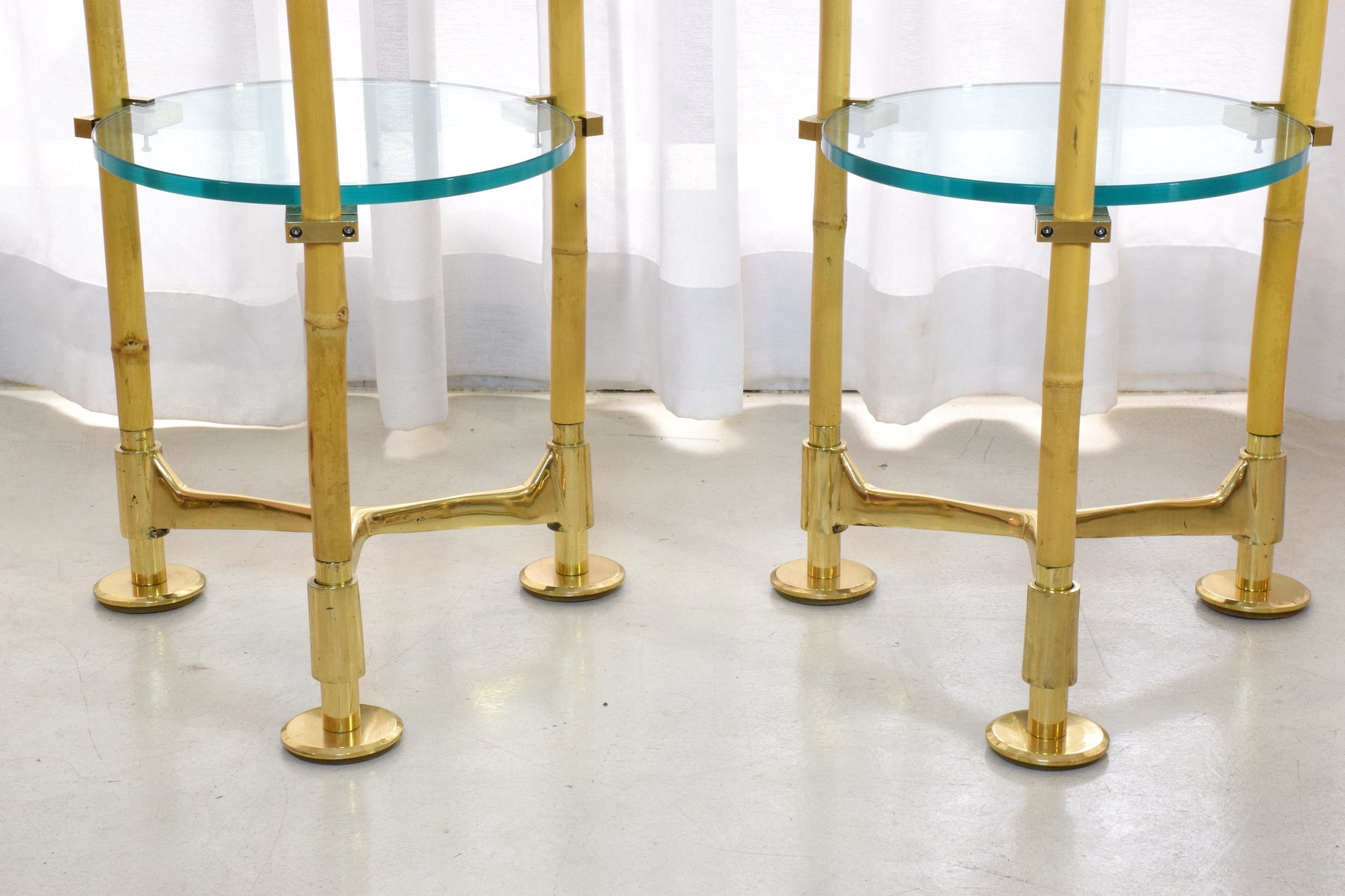 Two Vintage Brass Bamboo Floor Lamps, Gabriella Crespi Style, 1970s